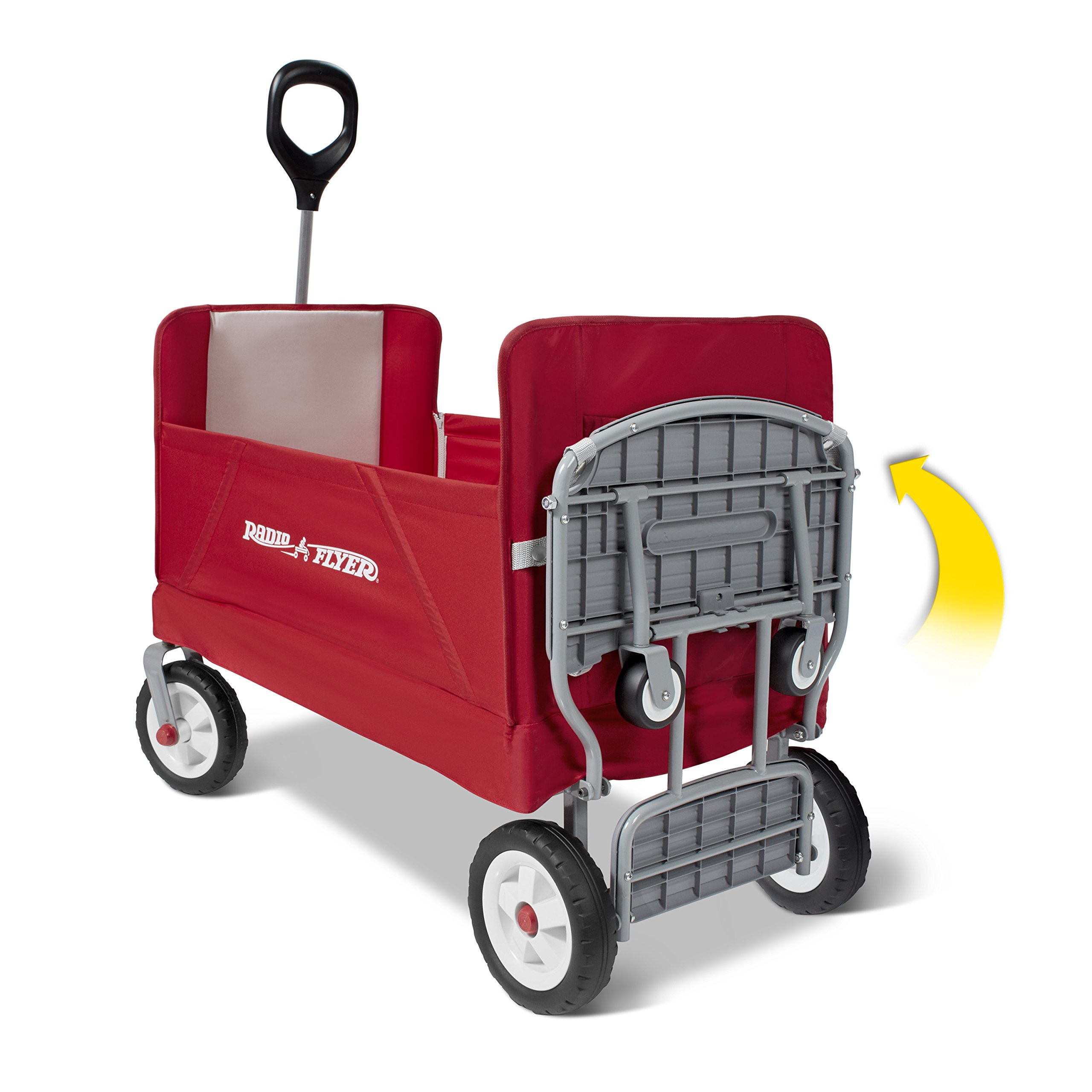 - 3 WAGONS IN 1: this collapsible wagon has 3 riding features: hauling, 2 rider seating and bench seating. Easily transform from hauling to bench seating with the zippers on the side of the wagon.