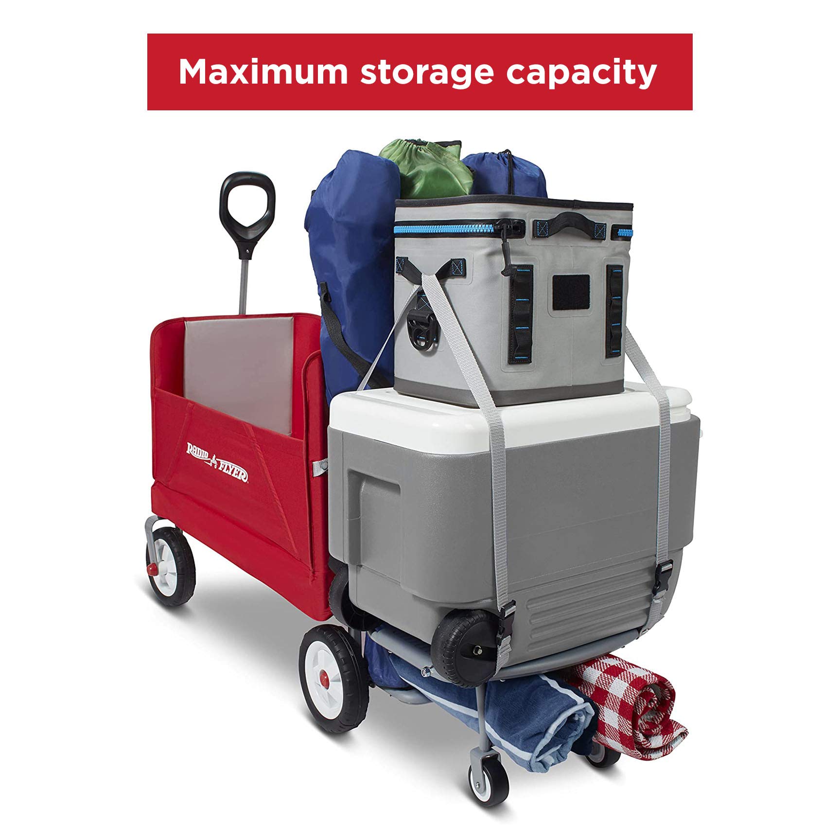 - COOLER CADDY: this wagon offers optimal storage options by the innovative cooler caddy. When ready for use, simply fold down the cooler caddy, add your cargo, and secure with the straps.