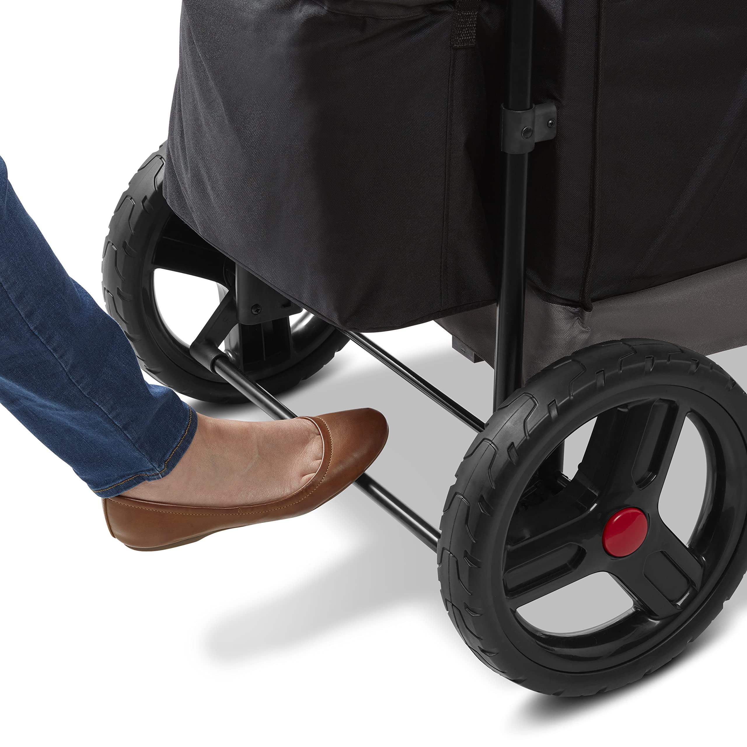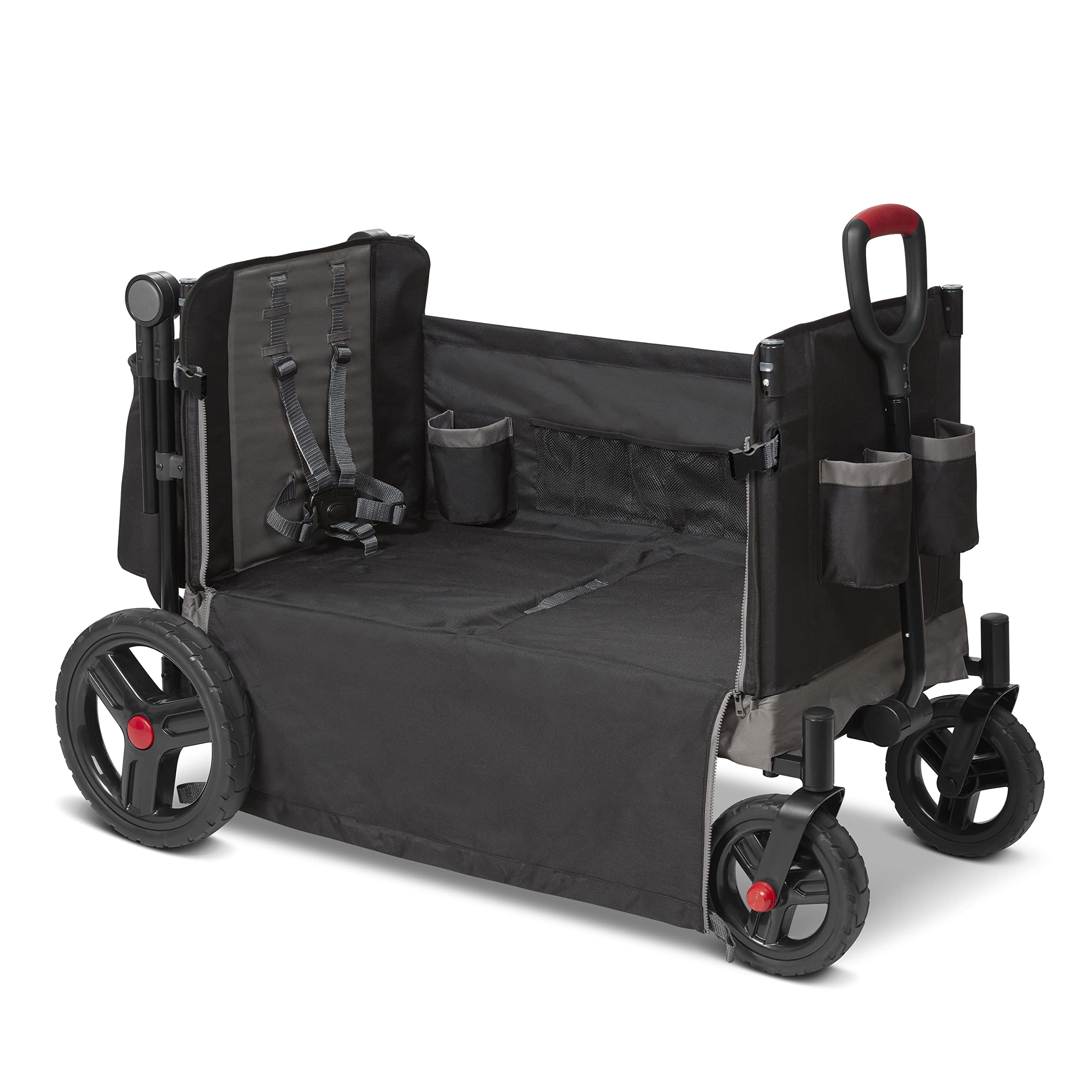 - DELUXE WHEELS: This wagon features durable rubber wheels u2013 12u201d easy-push rear wheels with bearings for comfortable riding and front caster wheels for nimble steering.