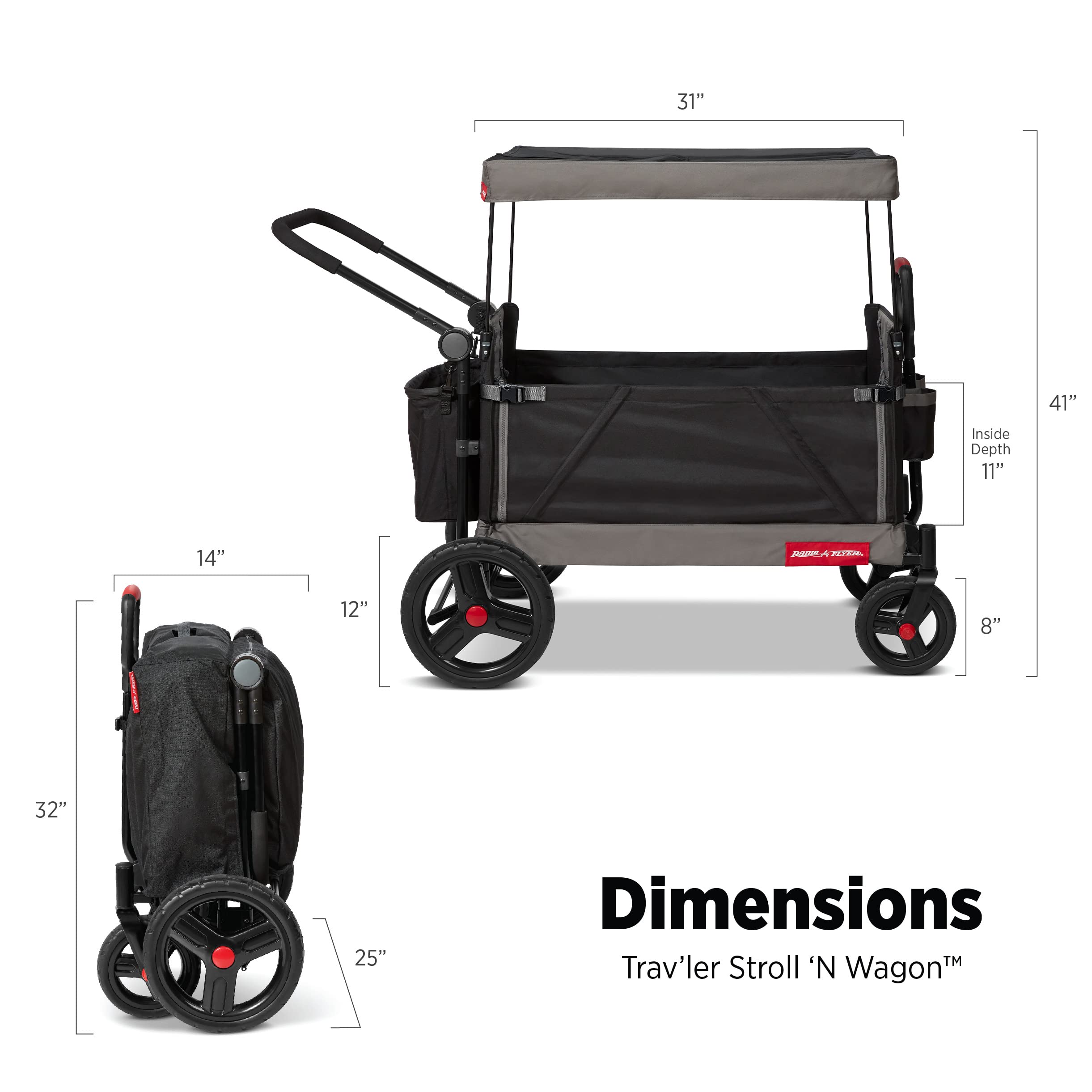 - PUSH & PULL: The Trav-ler Stroll u2018N Wagon allows you to pull like a wagon or push for ultimate convenience in one vehicle. It features a NeverFall wagon pull handle in the front and a fold-away push handlebar on the back.