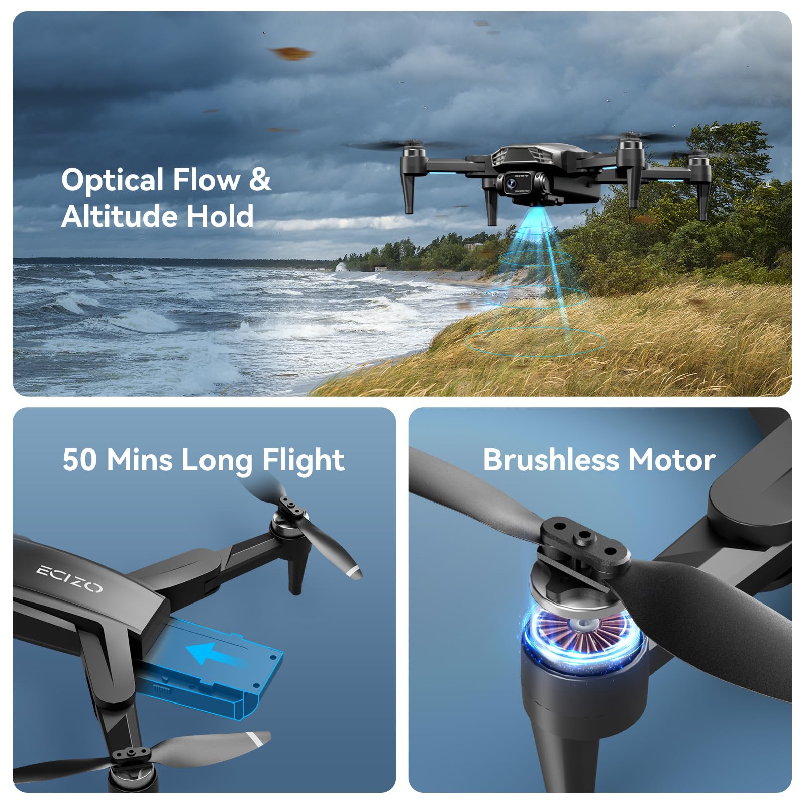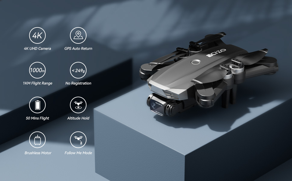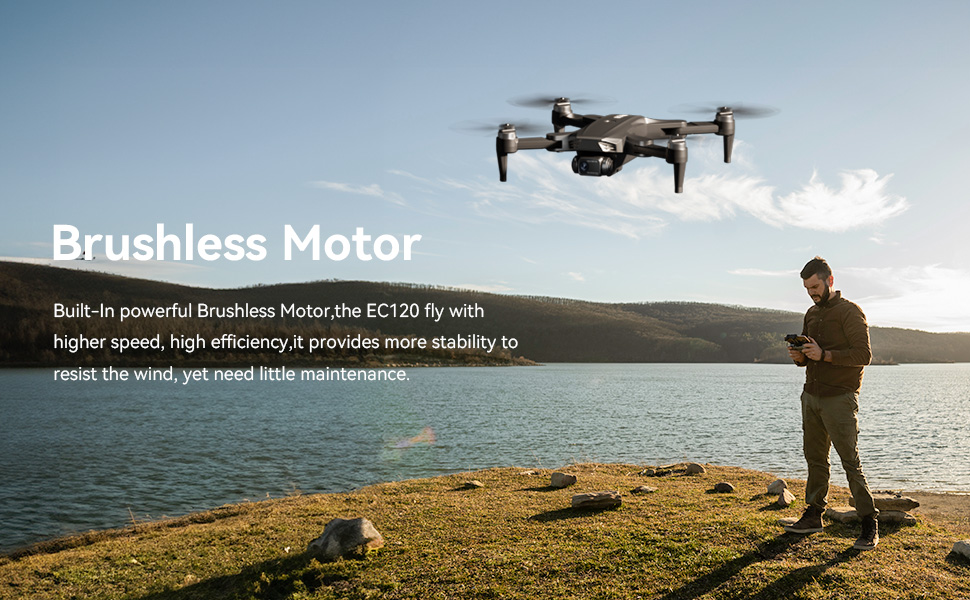 - Next Level Fly Performance: Come with 2 intelligent batteries to support 50mins long flight time and 1KM long range. The Brushless Motor provides higher speed, higher efficiency and better stability to resist the wind, worry-less in the difficult fly conditions. EC120 is lightweight, portable and No FAA Registration needed, makes it a perfect drone for adults, travel, aerial photography, outdoor activities.