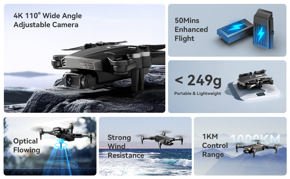 - Smart and Easy to Control: This rc drone equipped with smart functions such as Optical Flow, Altitude Hold provide very precise and stable hovering; Headless Mode, One key Start, Speed Adjustment let the drone beginners or kids control the it easily!