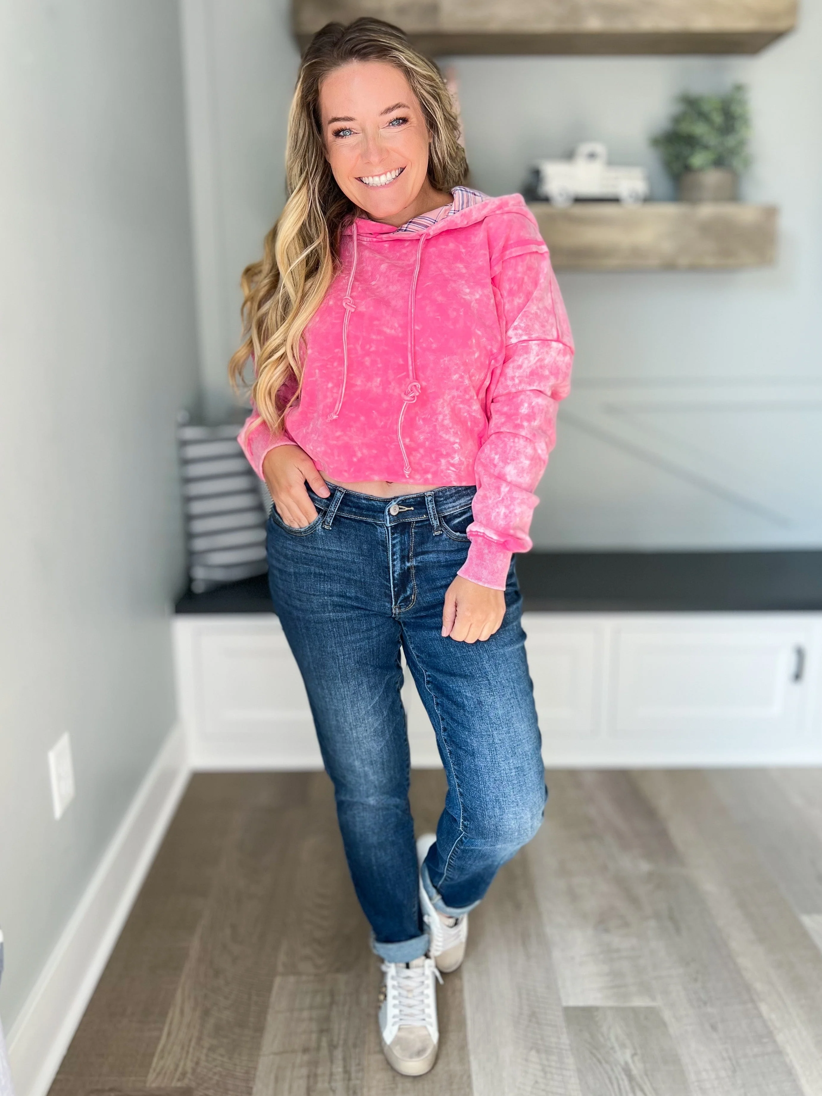 The PERFECT every day, "look cute with no fuss" pair of jeans and our most requested style... non-distressed boyfriend jeans! These feature a gorgeous dark wash and grain, with that delish Judy Blue stretch and comfort that everybody goes crazy for! If you see your size in stock, grab them! They sell out fast every time we have these beauties.