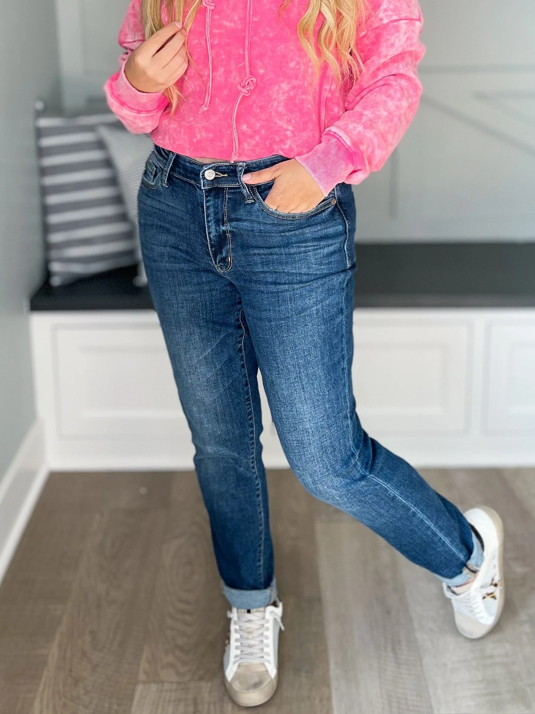 Remain Calm - Judy Blue Cuffed Boyfriend Jeans