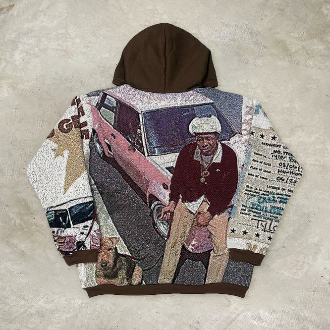 • Retro Contrast Casual Pattern Tapestry Hoodie