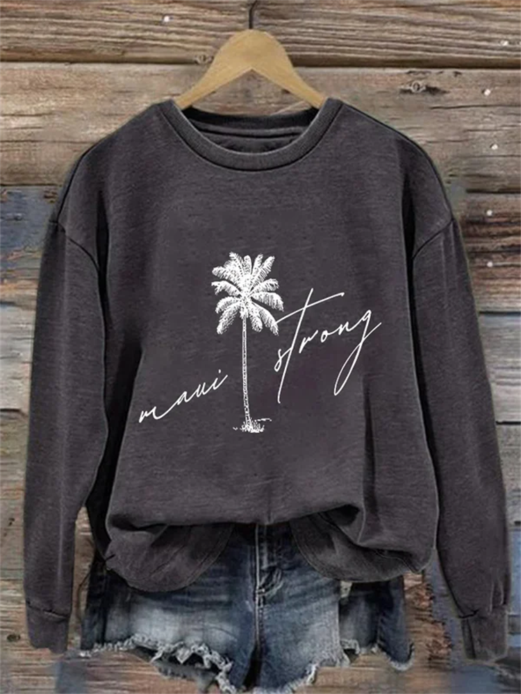 • Retro Maui Strong Pray For Maui Palm Tree Print Sweatshirt