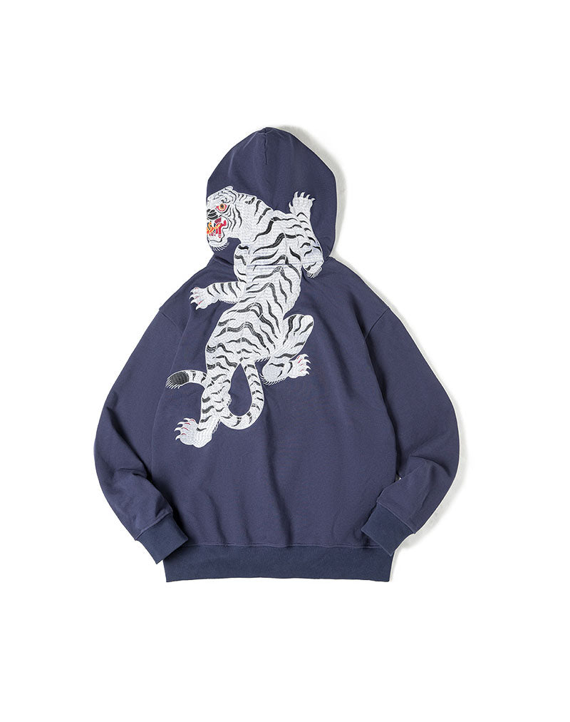 Retro Tiger Embroidery Heavy Hooded Pullover Men's Sweater