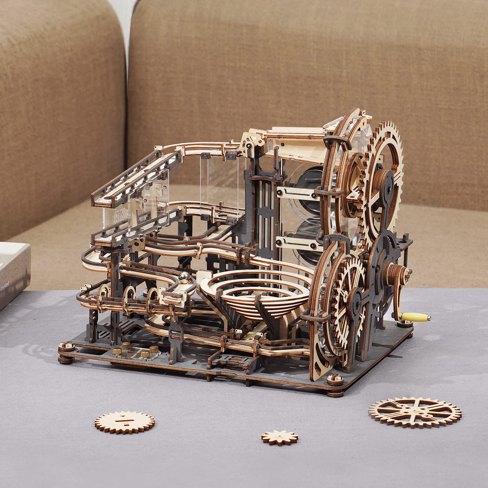 - u3010Cool Perpetual Motion Science Kitsu3011The ROBOTIME Wooden Marble Run is powered by hand cranking, mechanical gear rotation, endless loop steel balls (package include 10 metal balls), you can feel the charm of machinery.