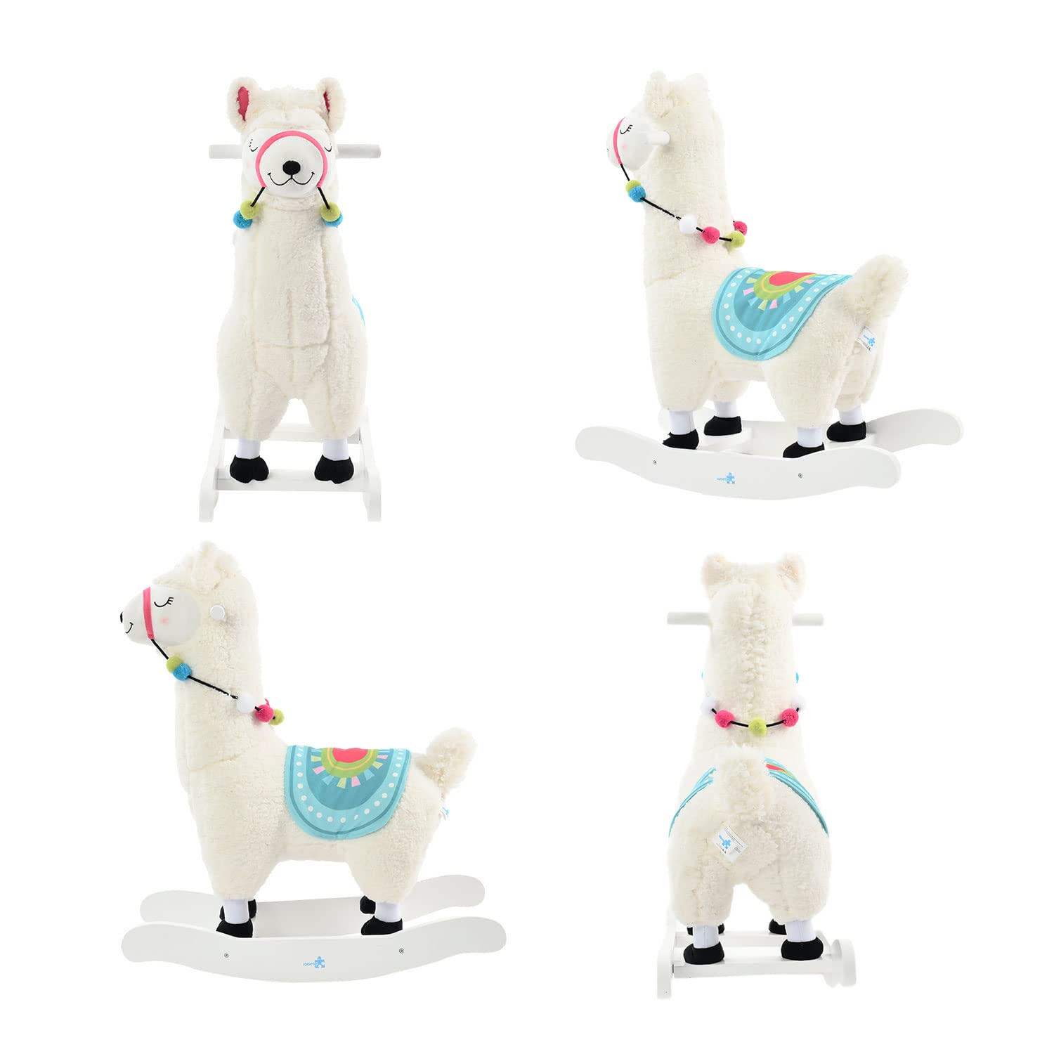 - u265f Certified Safe Material & Quality Guaranteeu265f - Our products feature third-generation plush fabrics and premium PP cotton, PP cotton can still be kept breathable in summer. This white llama/Alpaca rocking horse will accompany your child safe growth. Material of our rocking horse used is strict to Toys Safety Standards EN-71 CE in Europe and ASTM F963 in US. If the product does not live up to your expectations, we guarantee you 30 days money back with no question asked.