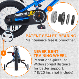 - ud83cudfc6Specifically For Kids - Each bike equipped with RoyalBaby patent sealed bearing for smooth pedaling. Training wheels come with 12/14/16 inch bikes, making it easy to maintain balance and learn to pedal even for young beginners. The water bottle and holder adds more joy to the ride. Fully adjustable seat and handlebar will give extra space when kids grow taller