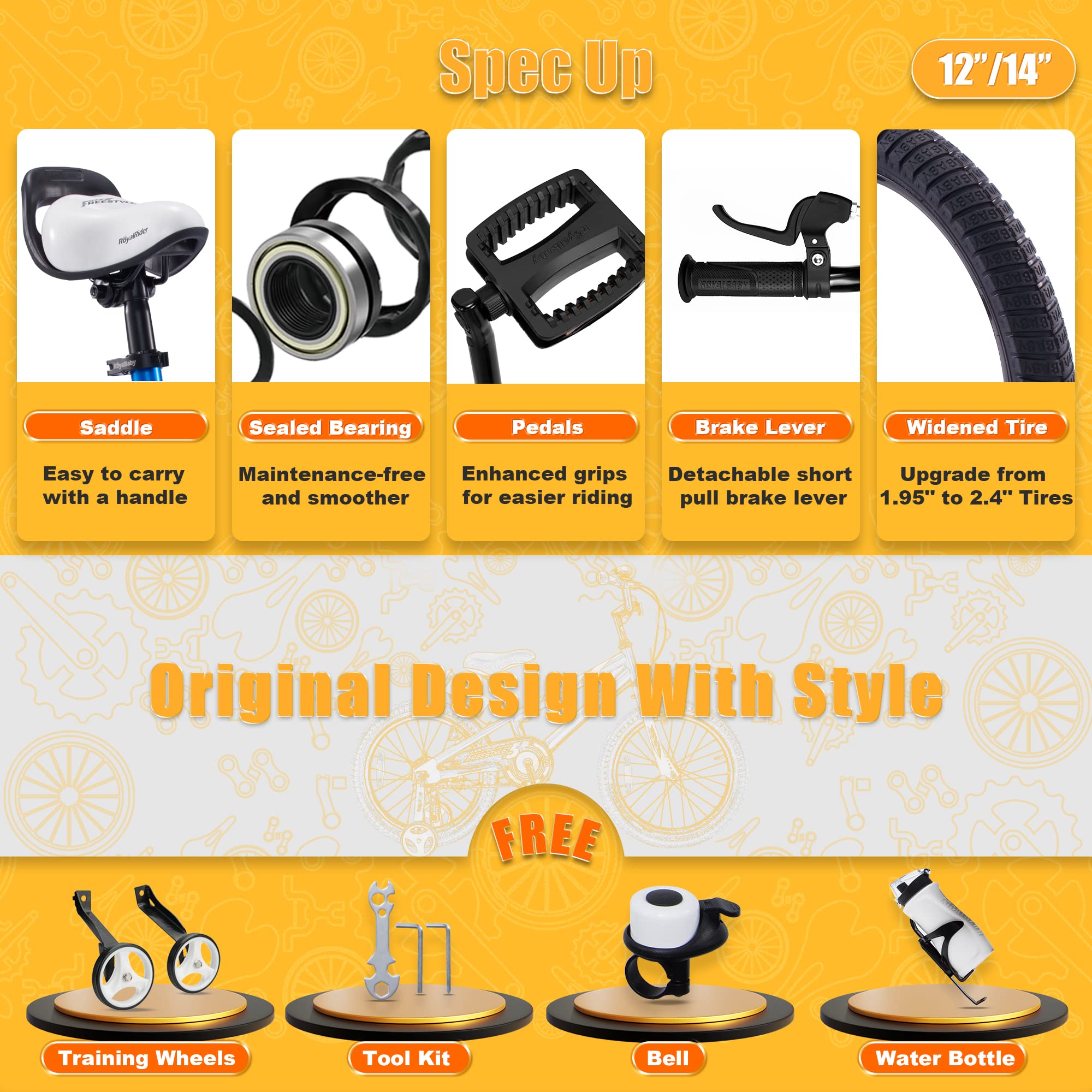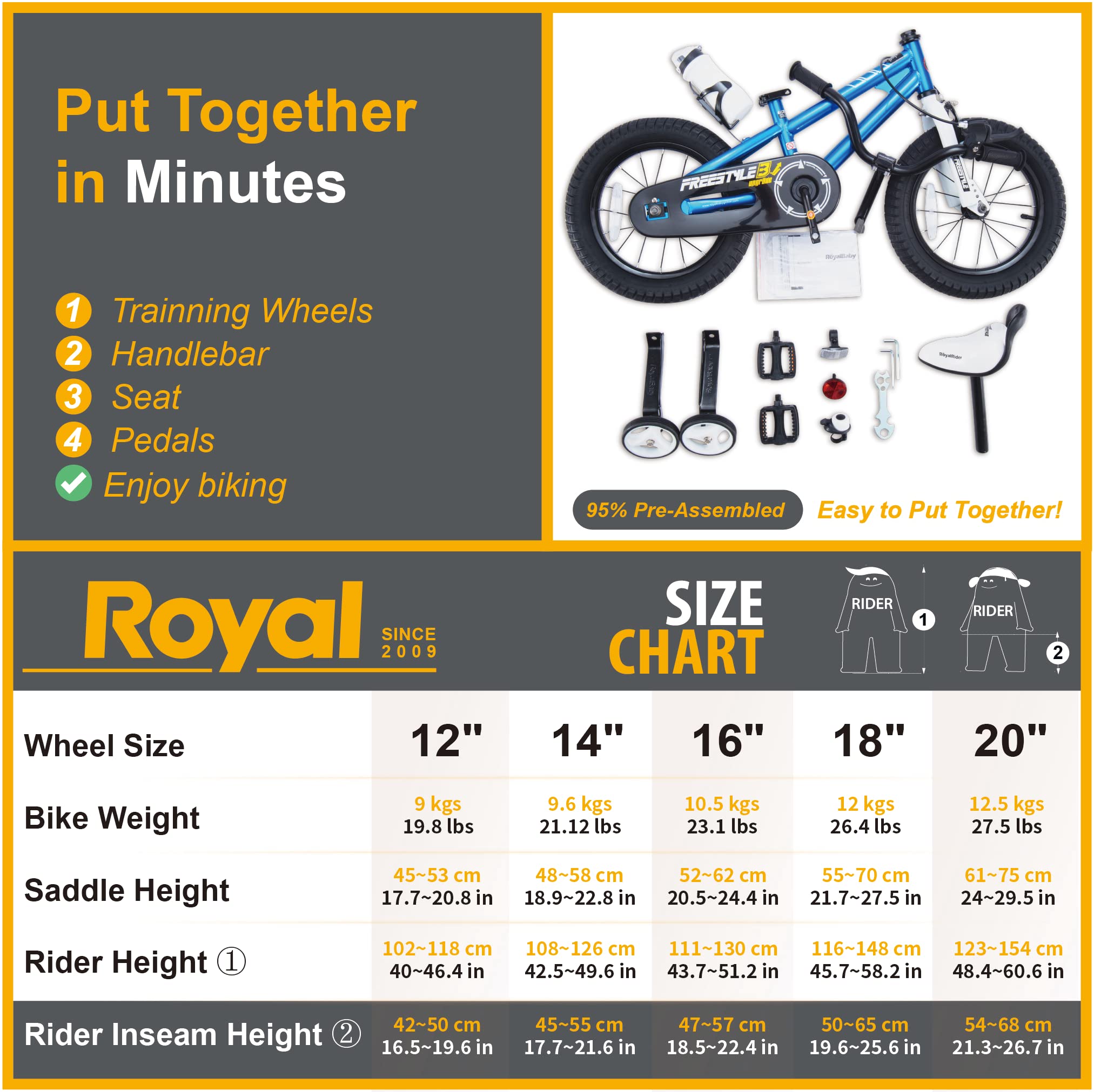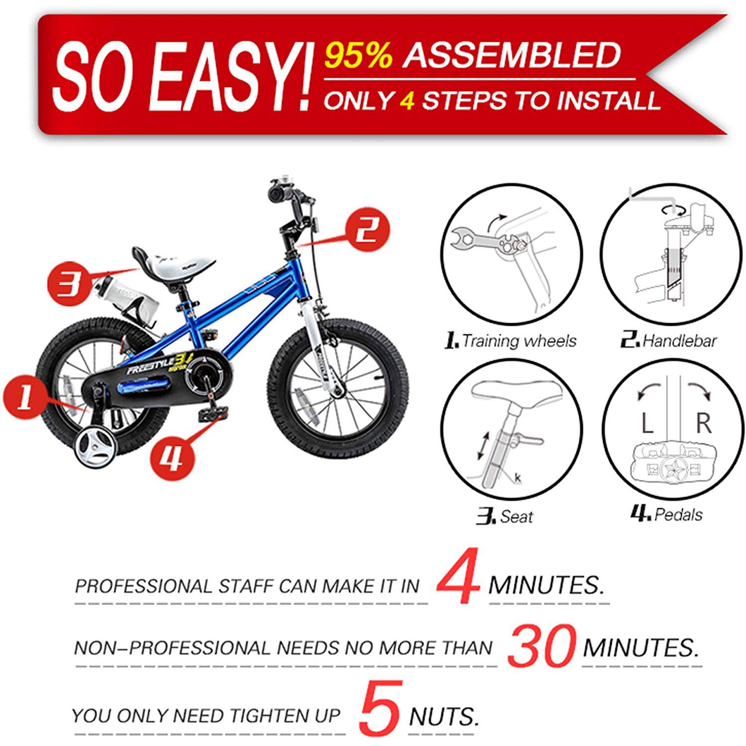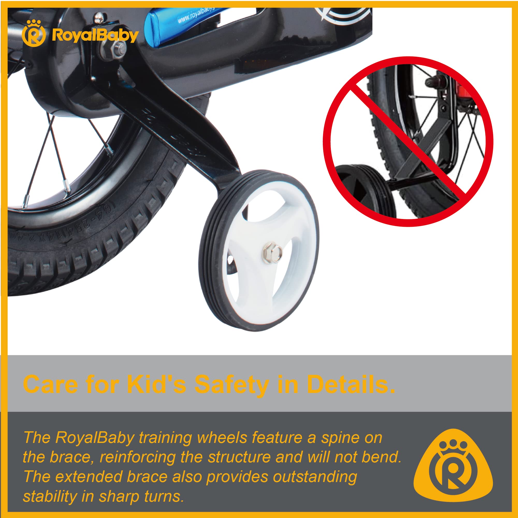 - ud83cudfc6Specifically For Kids - Each bike equipped with RoyalBaby patent sealed bearing for smooth pedaling. Training wheels come with 12/14/16 inch bikes, making it easy to maintain balance and learn to pedal even for young beginners. The water bottle and holder adds more joy to the ride. Fully adjustable seat and handlebar will give extra space when kids grow taller