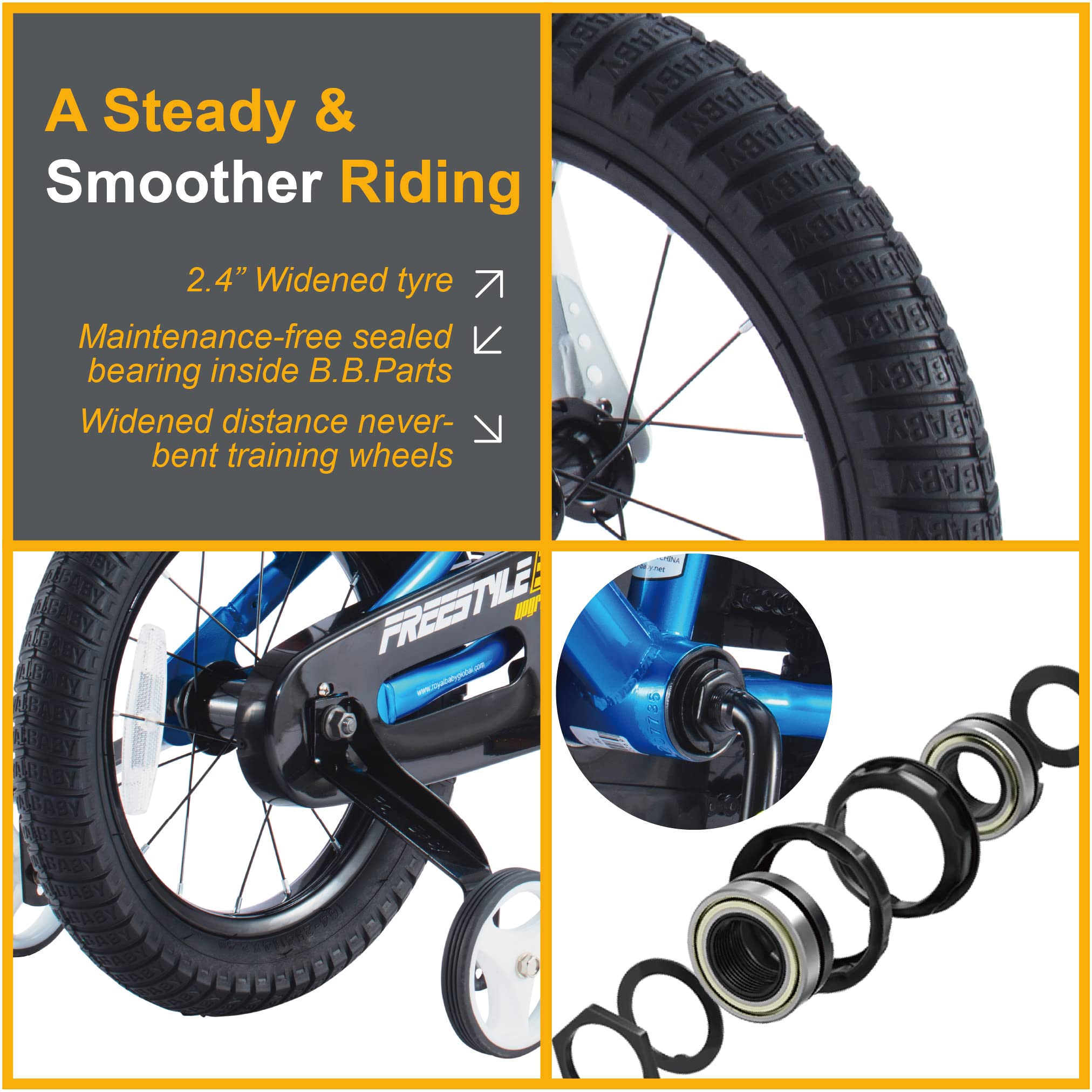 - ud83cudfc6Sporty Design - RoyalBaby Freestyle kid's bike was designed by inspiration from the BMX spirit, It's all about fun, creativity, freedom, and friends. The sporty-looking is perfect for the next cycling star!