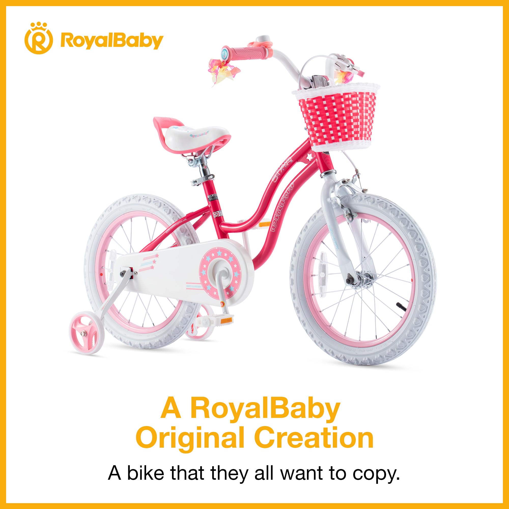 - u2b50ROYALBABY STARGIRL BIKE FOR GIRLS u2013 Fashionable design and classic color matching. Eye-catching twinkling stars decals imply every girl is unique, independent, develops at their own pace and shine like the stars in the sky. A quality option includes all features that girls love.