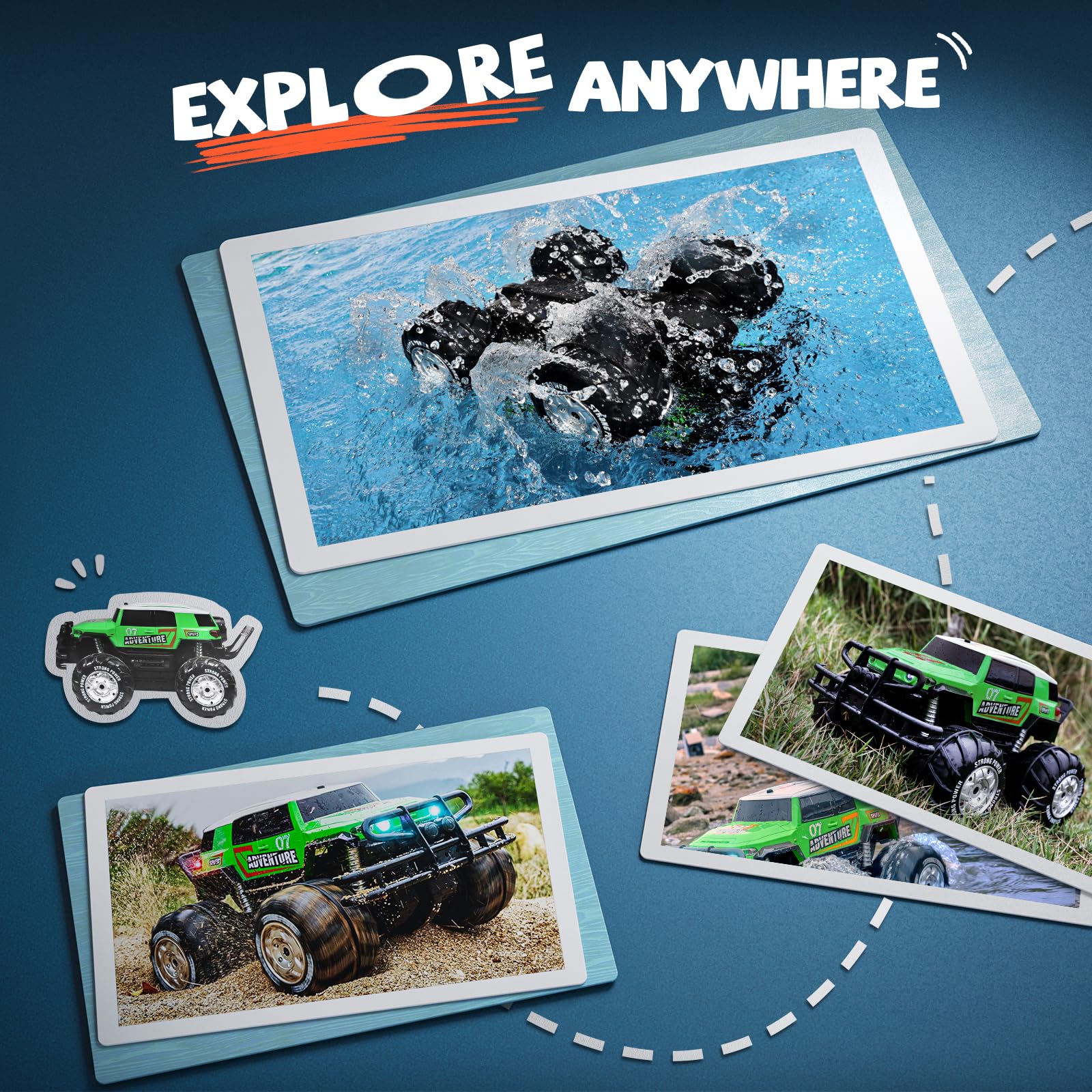 - u3010ud835uddd7ud835uddfcud835ude02ud835uddefud835uddf9ud835uddf2 ud835udde6ud835uddf6ud835uddf1ud835uddf2 ud835uddeaud835uddeeud835ude01ud835uddf2ud835uddff ud835uddd7ud835uddffud835uddf6ud835ude03ud835uddf6ud835uddfbud835uddf4u3011This amphibious RC truck is IPX6 waterproof, which can drive in the water on the double side; the remote controller is also fully waterproof. It's also a cool remote control boat for pool and lake toys.