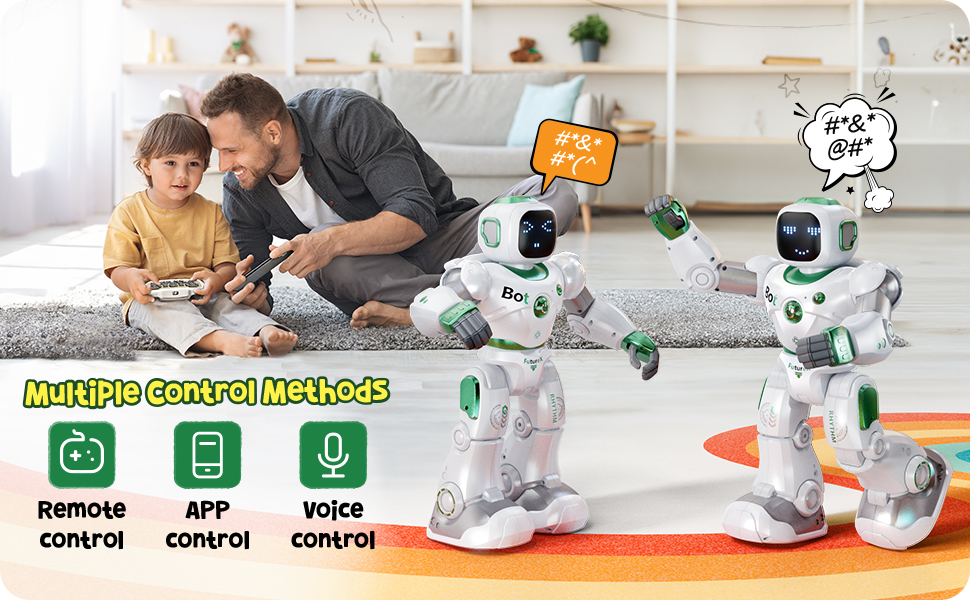 • ud83cudf81u3010ud835udfd2 ud835udc02ud835udc28ud835udc27ud835udc2dud835udc2bud835udc28ud835udc25 ud835udc16ud835udc1aud835udc32ud835udc2c ud835udc12ud835udc2eud835udc22ud835udc2d ud835udc03ud835udc22ud835udc1fud835udc1fud835udc1eud835udc2bud835udc1eud835udc27ud835udc2d ud835udc00ud835udc20ud835udc1eu3011The Ruko robot can be controlled by remote controller, phone App, and also supports voice command and gravity sensors, which suits for different ages and will also enrich your child's mind with the different interactive challenges.