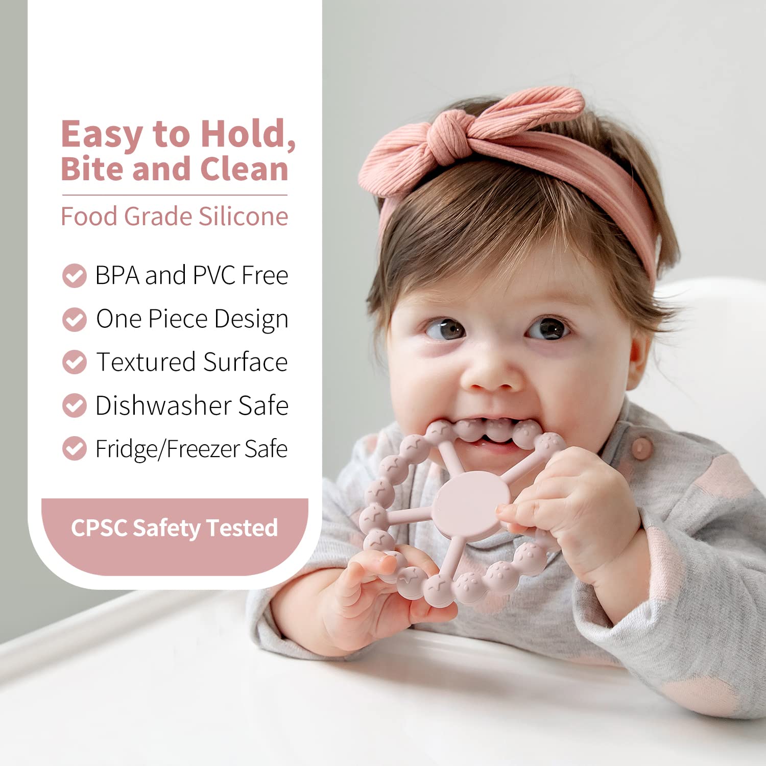 - No Choking Hazard: You can have peace in mind our teether is technically impossible to be shoved too far into little mouths. Plus, it stands the test of time and no small parts will ever come loose, thanks to our one-piece design and extra durable silicone.