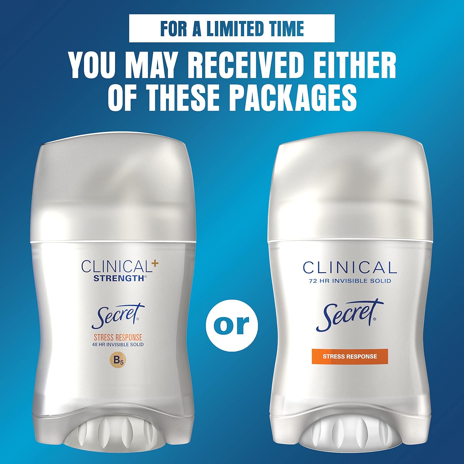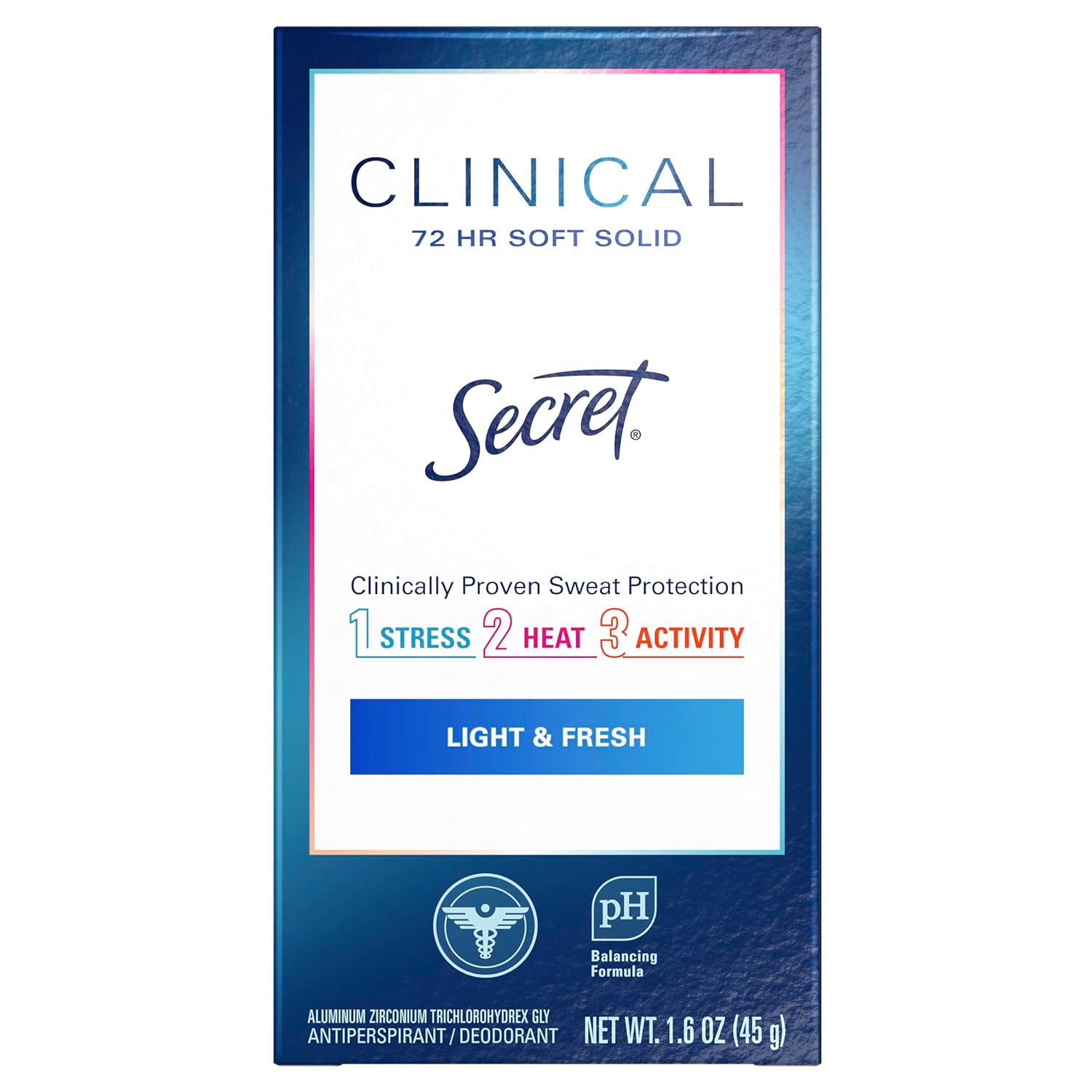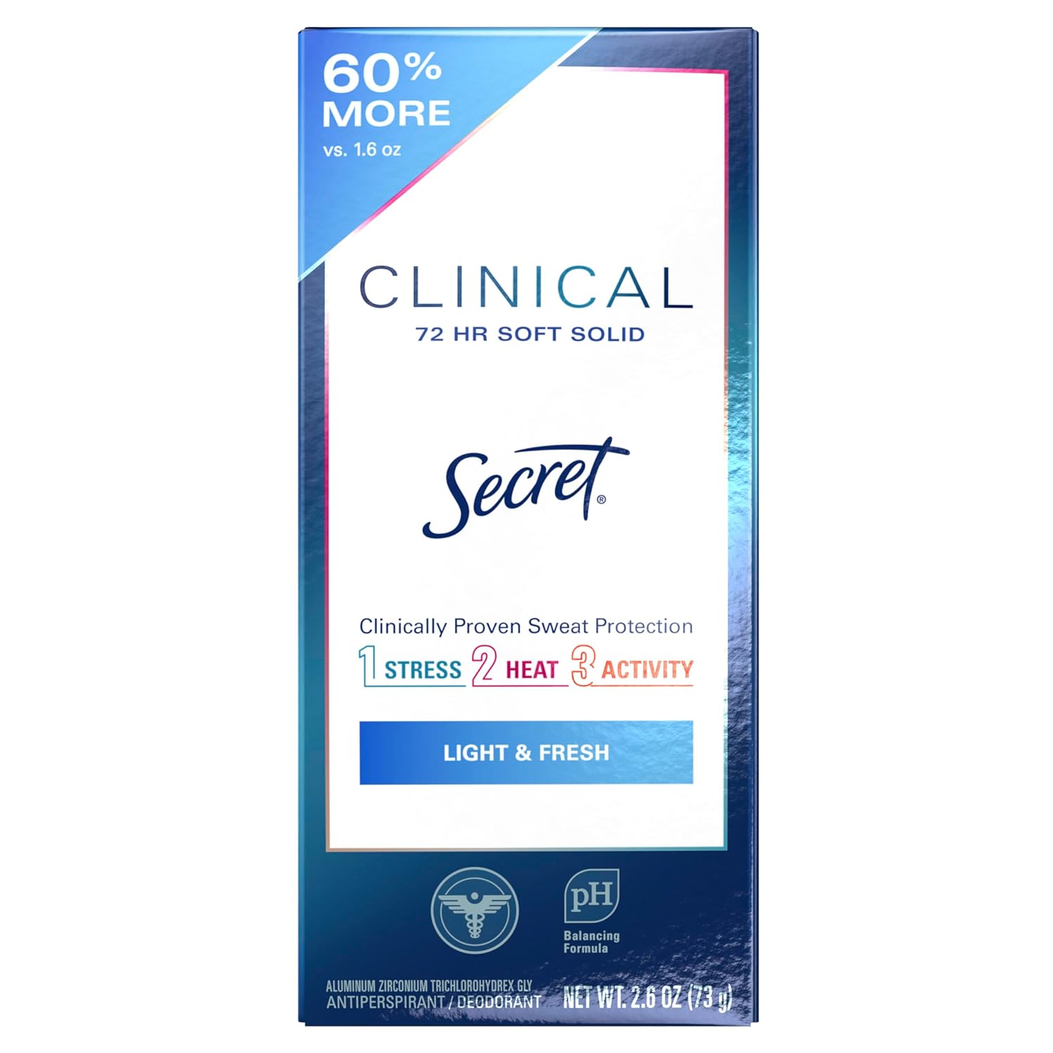 - Clinical Strength protection to fight 3 types of sweat – stress, heat, and activity