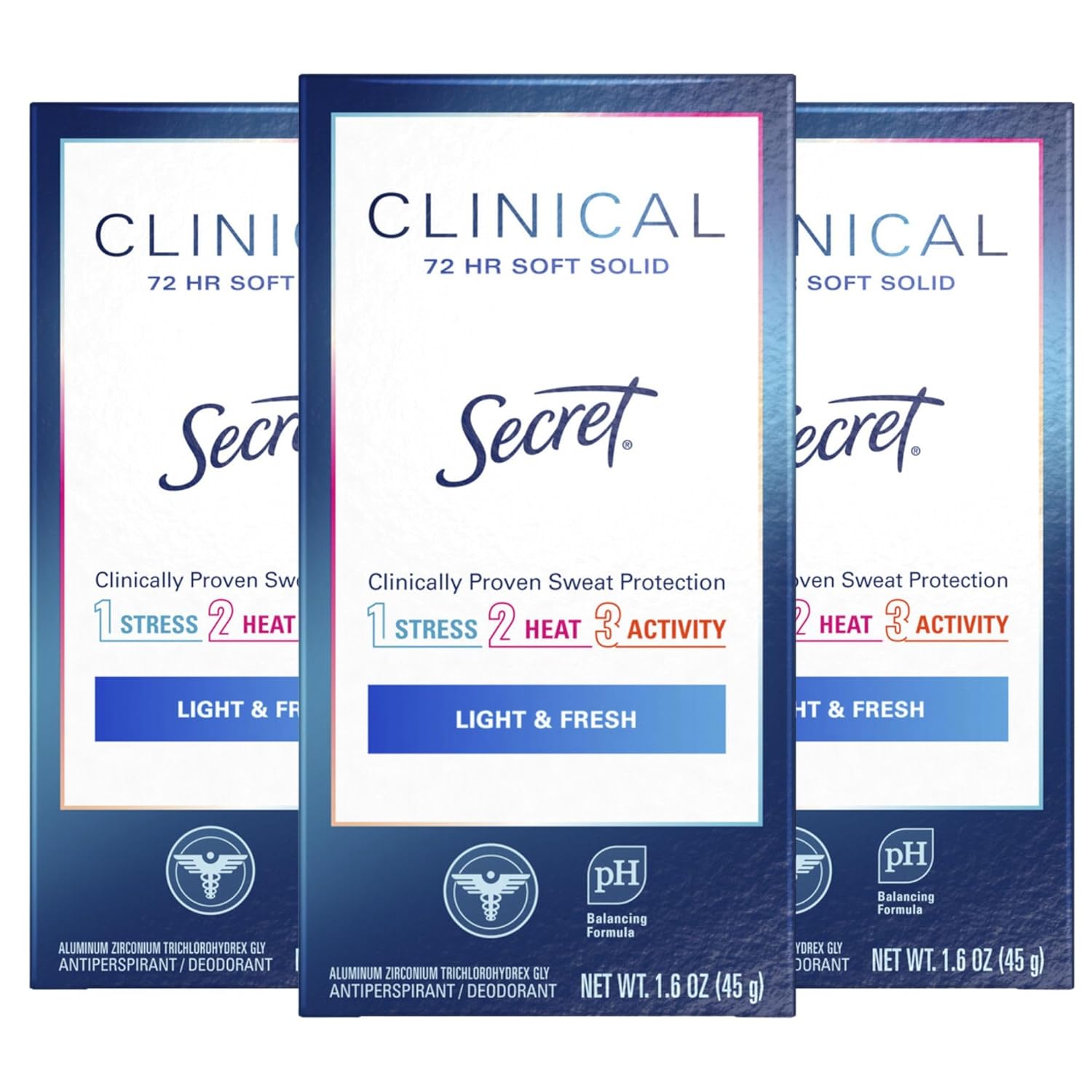 Secret Clinical Strength Antiperspirant and Deodorant Women, Soft Solid Stress Response, 72 Hr Sweat Protection, 1.6 oz (Pack of 3)