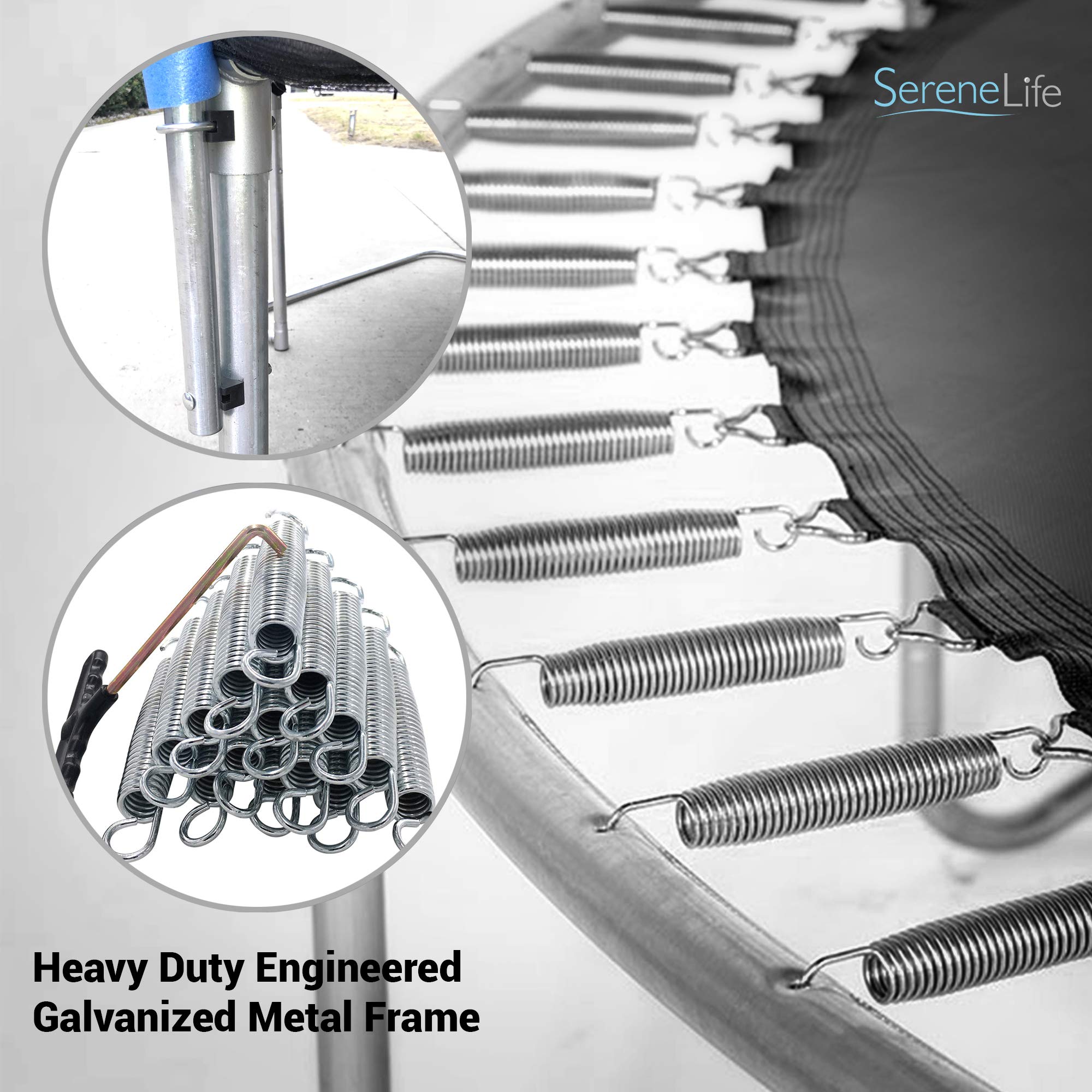 - SUPPORTS UP TO 264 LBS: SereneLife full-size trampoline with enclosure for adults, kid, teens have a maximum weight capacity of up to 264 lbs while offering superior and impressive bounce. Keeps your kid active and entertained