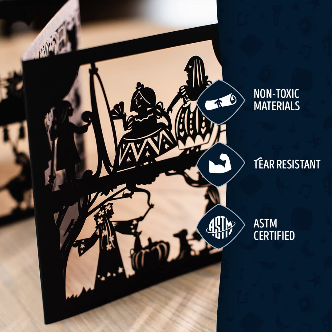 - FAMILY-FRIENDLY: Bring everyone together for a fun-filled game night. Hold the book or place it on your bed, then dim the lights and turn on your phone's light. The shadow theater is perfect for family gatherings and children's parties, and when extra shadow puppets are added, the game becomes even more engaging. You'll find a short version of the tale inside the box, as well as a QR code for the full audio version of the story.
