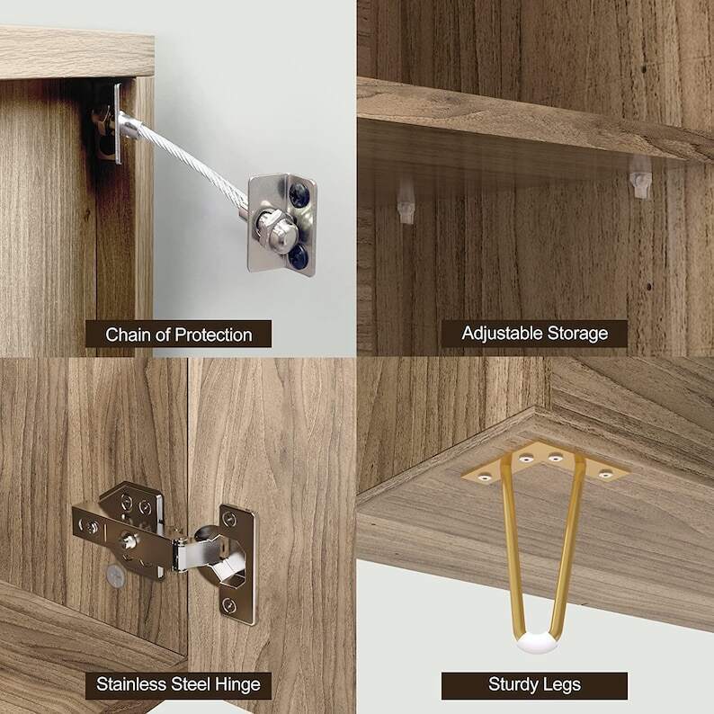 *[Weight and Safety] Top surface supports up to 100 Ibs and shelves support up to 50 Ibs. Very strong and durable with great security. There are two protective chains behind the cabinet, which can prevent accidents when children touch the cabinet while playing, and can also fix the cabinet well to prevent it from moving.