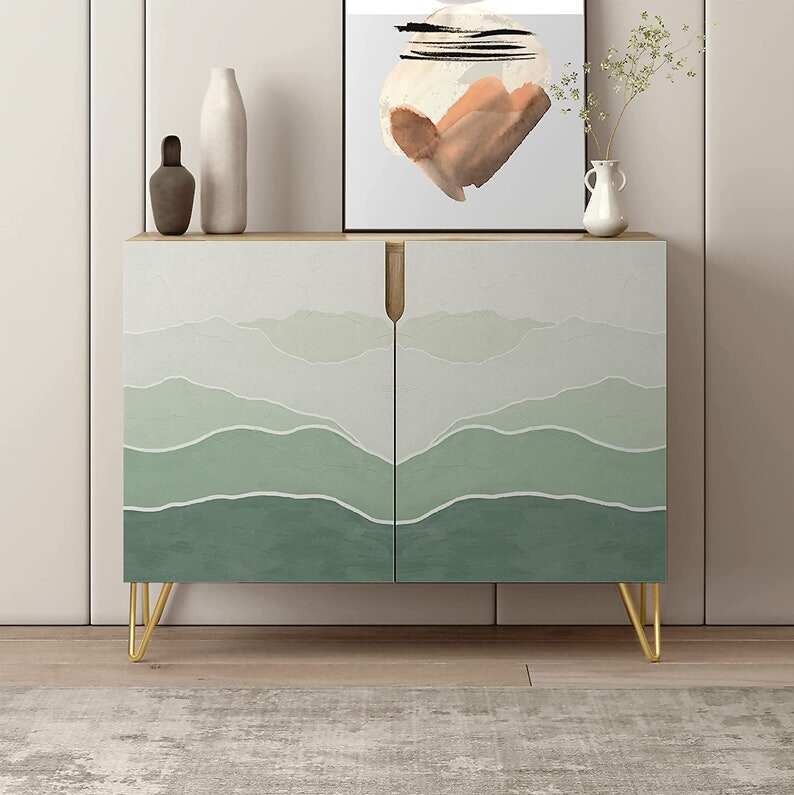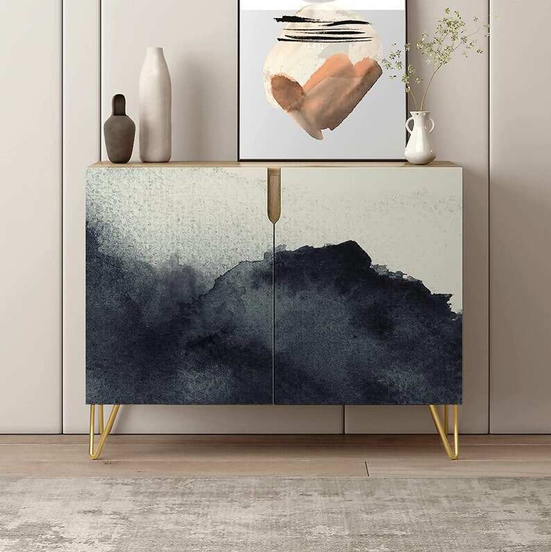 SIGNWIN Sideboard Buffet Cabinet, Kitchen Storage Cabinet with 2 Doors, Abstract Mount Landscape Pattern, Cupboard Console Table for Dining
