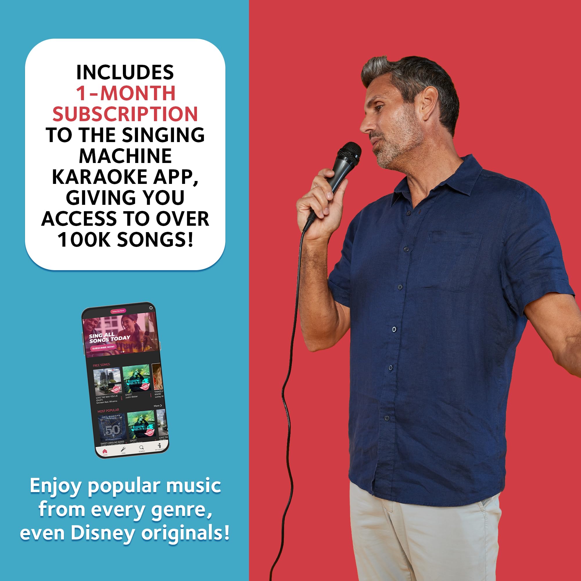 - Works With Any Music or Karaoke App: Our own Singing Machine app offers access to a wide variety of karaoke music for even more entertainment. Family-friendly lyrics allow you to focus on the fun. Includes 5 karaoke song downloads of your choice.