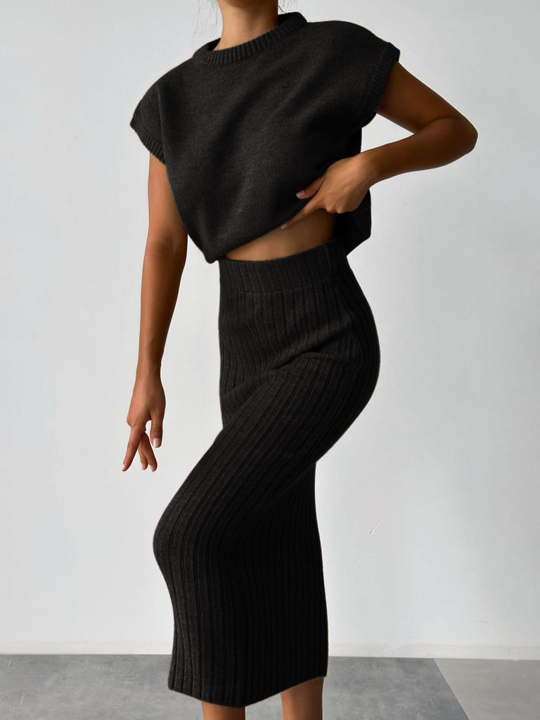 Sleeveless vest + knitted skirt two-piece set