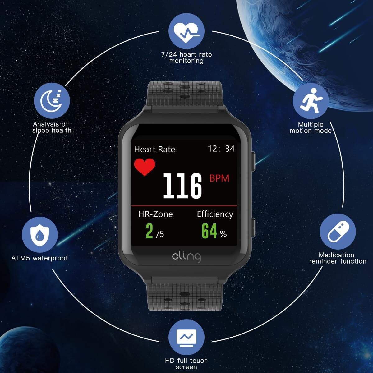 - Heart Rate Monitor & Sleep Tracker: After connecting the blood pressure watch via bluetooth,Heart rate interface always on,use built-in GPS to track speed, pace, distance & routes and get continuous heart rate tracking & real-time zones in cycling and running workouts.High & low heart rate alerts: Cling’s health tracker performs 24/7 real-time heart rate monitoring and high heart rate warning.