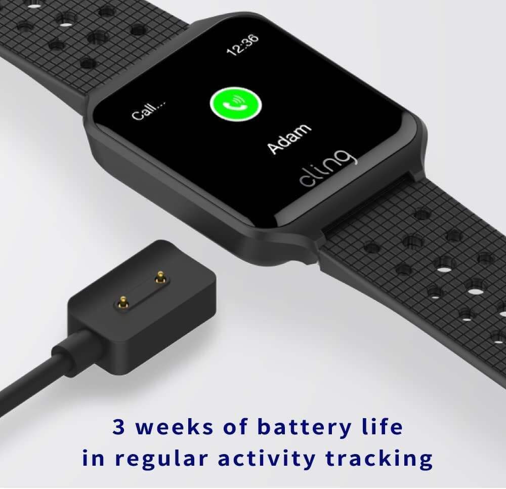 Cling Leap Smart Watch with Heart Rate and Sleep Monitor This smart watch requires iOS 8.0 or later, Android 4.4 or later, Bluetooth 4.0 or later. Key Features: 1.28 Inch Full Touch Color Screen: -Clearer display, more convenient to operate, bring you a new upgrade experience. 50M Waterproof: -Water resistant up to 50M, so you can wear your watch in the shower, pool and beyond. 24/7 Heart Rate Monitoring: -Use heart rate to better track calorie burn, optimize effort during workouts, focus on and know more about your health. Sleep Better, Live Better: -Sleep plays a huge role in your health. Wear Cling Leap smartwatch at night to learn about your sleep. Sports Tracking & GPS Connectivity: -Fitness tracker built with 6 exercise modes, connect the watch to your smartphone to track GPS data. Control Your Music: -Play and pause music or switch songs by control watch, without having to remove your phone from your pocket. Find Your Phone: -You can find it through your smartwatch, and the phone will vibrate or ring to remind you where it is. Unique medication reminder function: -The Cling Leap health watch is a convenient and potentially life-saving device that can help wearers stick to medication regimens and avoid the complications of missed doses. Super Large Battery: -Only takes 2.5 hours to charge and can be used for up to 10 days with a standby time of 30-40 days. Specifications: Model: Cling Leap Screen Type: corning gorilla glass 3 Strap material: Silicone Battery Capacity: 220mAh Usage time: 10 days Standby time: 30~40 days Working Voltage: 3.8V Charging Time: 2-3 hours Package Include: 1 x Cling Leap Smart Watch 1 x Charging Cable