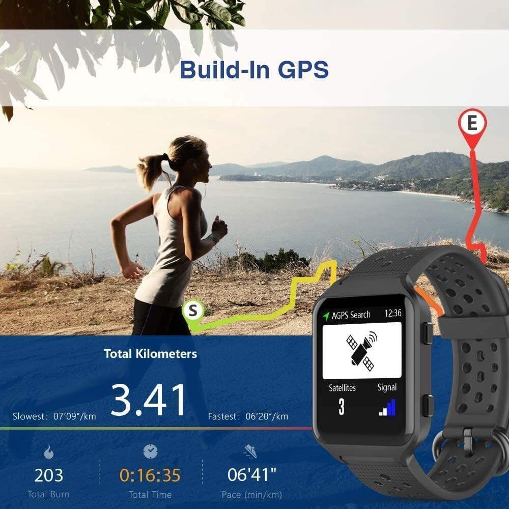 Smart Watch,Activity Trackers and Smartwatches,Heart Rate Monitor Watch,Medication Compliance Tracking,Fitness Watch for Android/iOS Phones,Waterproof with GPS Built-in,Suitable Men Women, black