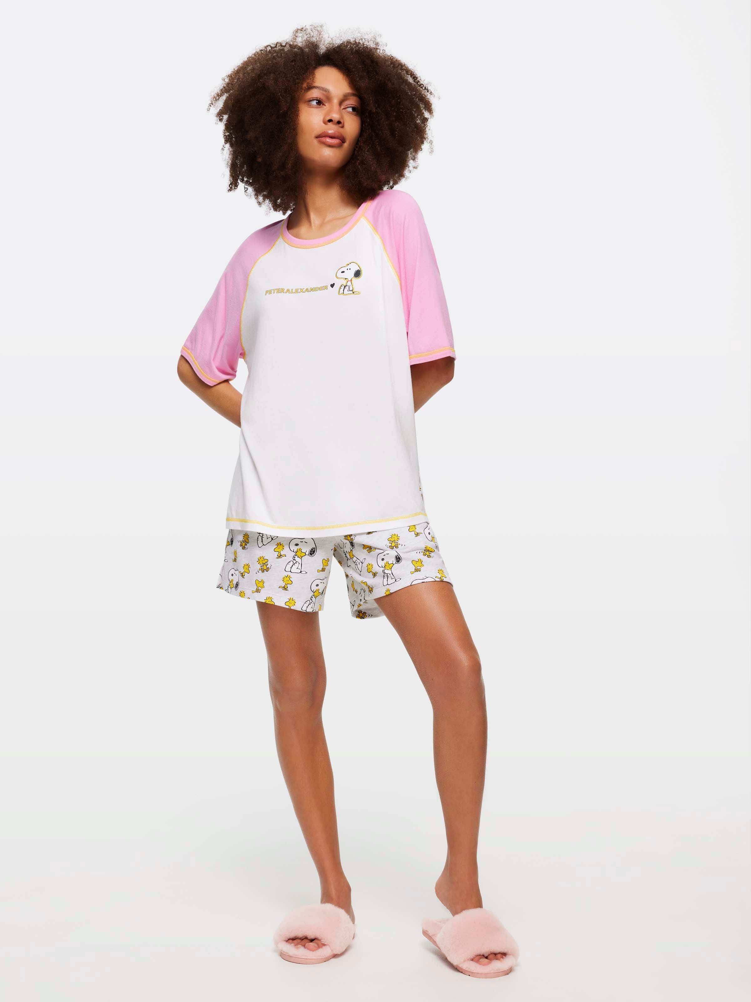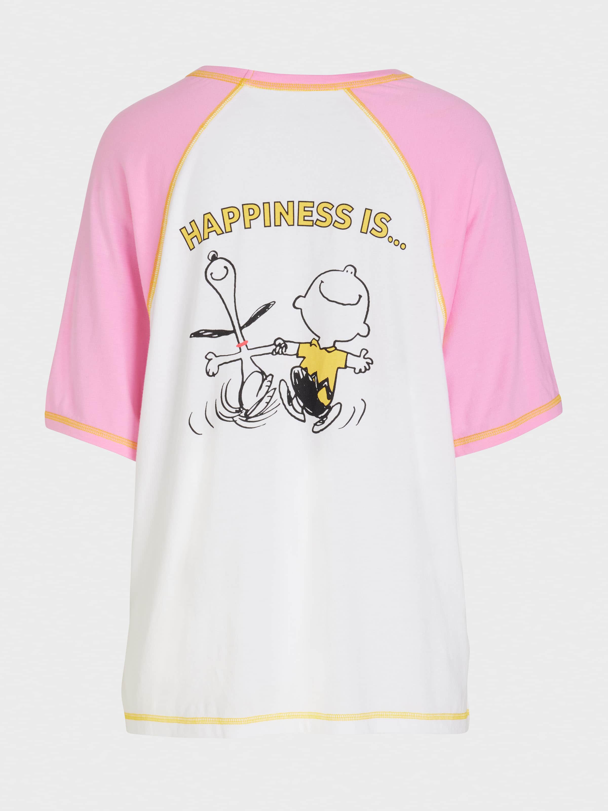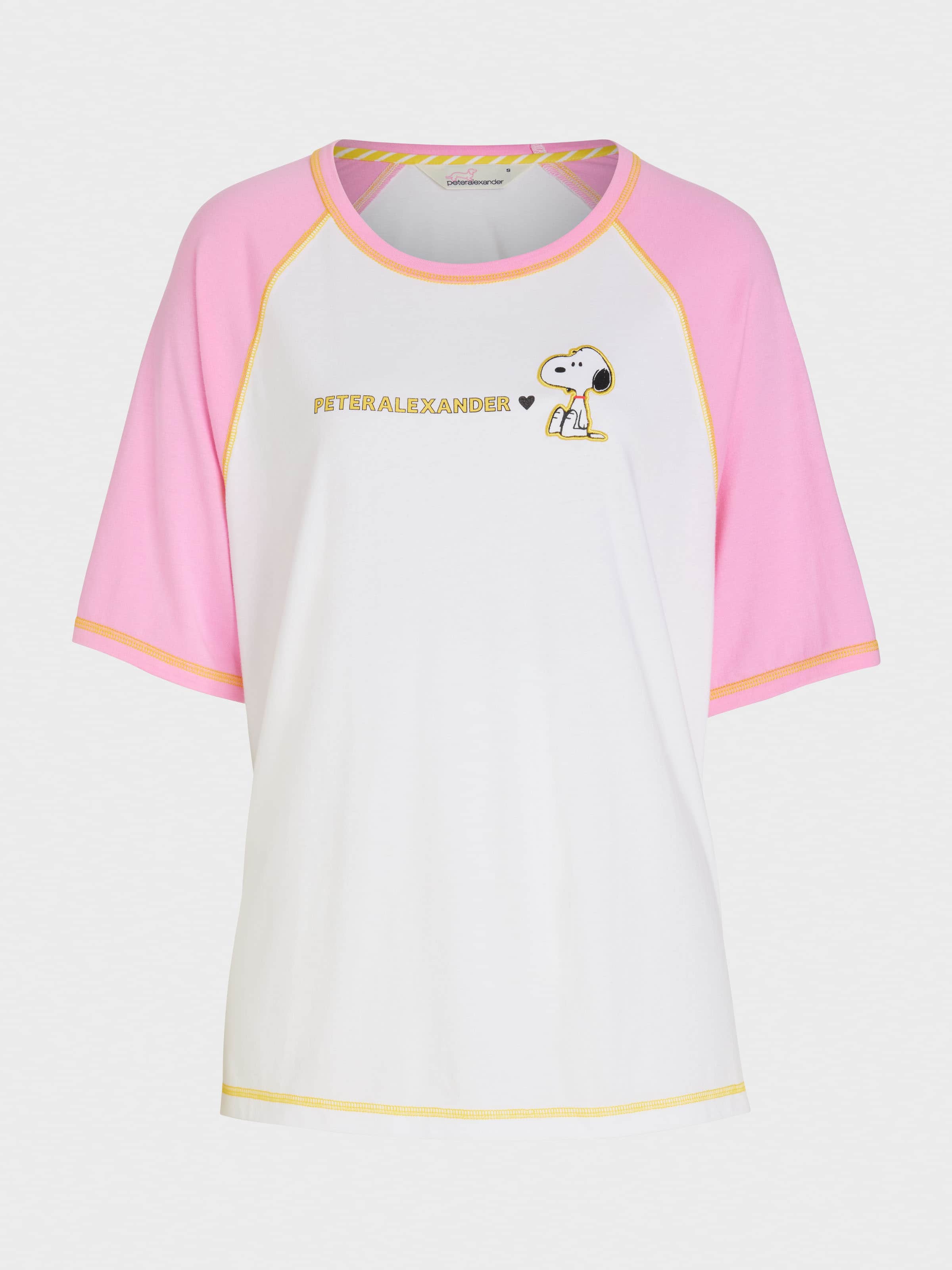 Dogs really are (wo)man's best friend... This women's oversized raglan tee features a sweet Snoopy print on the front and Charlie Brown and his hound on the reverse, complete with yellow contrast stitching. Wear this tee with either short in our Peanuts range all summer long.