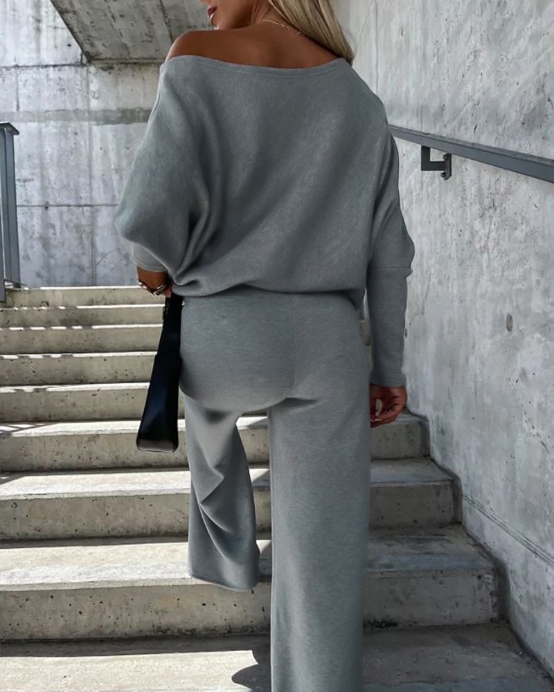 Solid Color Off-shoulder Casual Suit