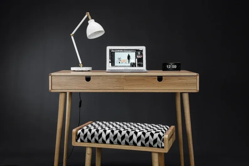 Solid oak desk , Bureau , dressing table , office desk, Classic, Mid Century, Modern.(with stool)