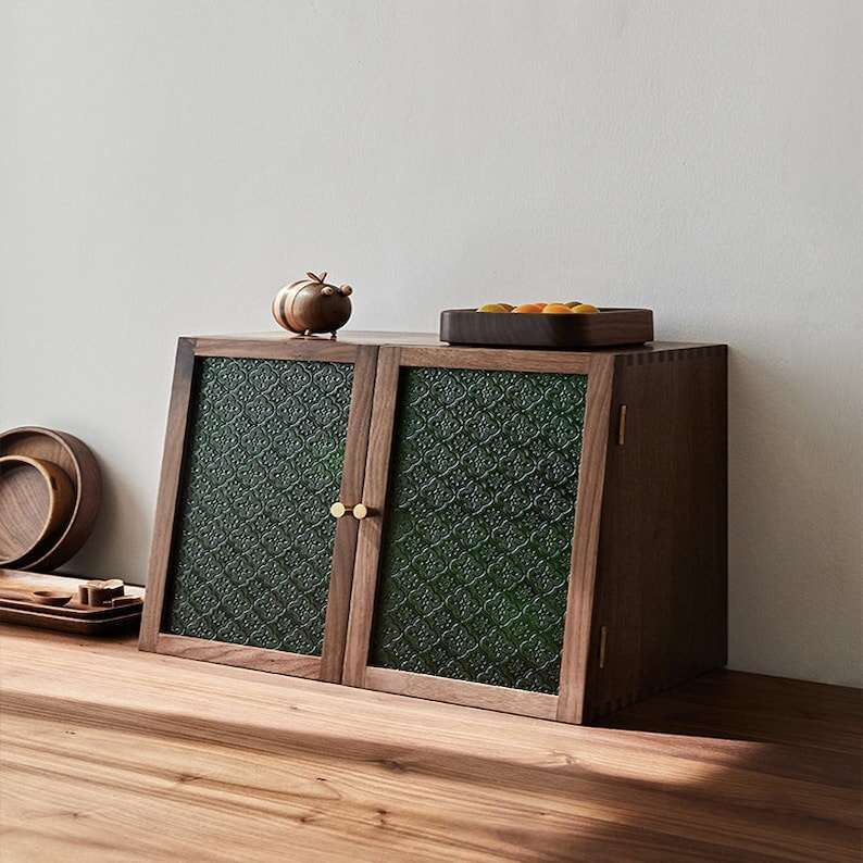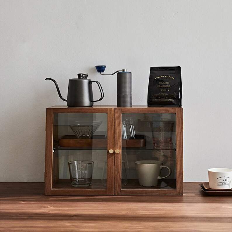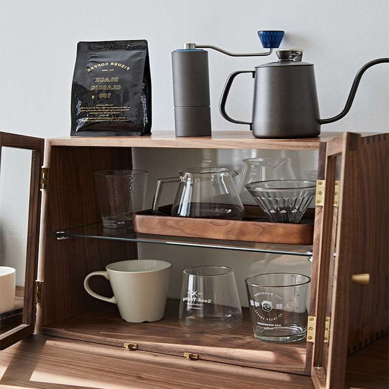 Solid wood sideboard cup desktop organizer storage cabinet black walnut tea tableware shelf
