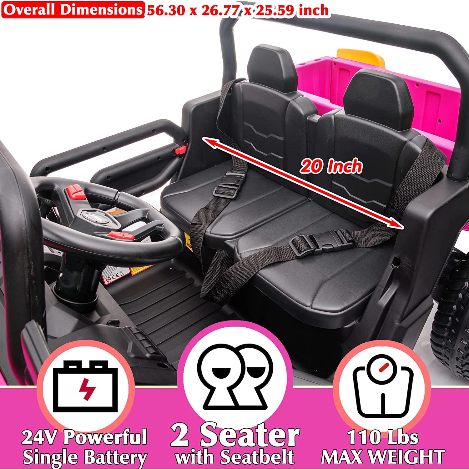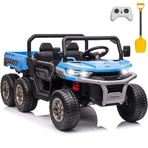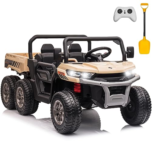 - u3010An Amazing Kids Gift that You've Never Seenu3011This electric vehicle UTV style is based on side-by-side ATV with cargo box. This ride on dump truck is crafted with a durable PP plastic body and certified by ASTM F963, the max load capacity up to 110lbs, the 2-seater comes with seat belt. It is the ideal ride on car toy for kids as a gift on Birthday, Halloween, Christmas, New Year, etc.