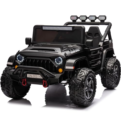 - ud83cudf81u30104WD Off-Road Trucku3011This 24V ride on truck comes with 4 powerful 555 motors as well as 4 EVA wear-resistant tires which allows kids to ride on various terrains, providing good driving experience to your kids. Speed range is 1.86-4.97 mph. Maximum load capacity: 110 lbs; Product size(inch):49.6*31.1*30.3