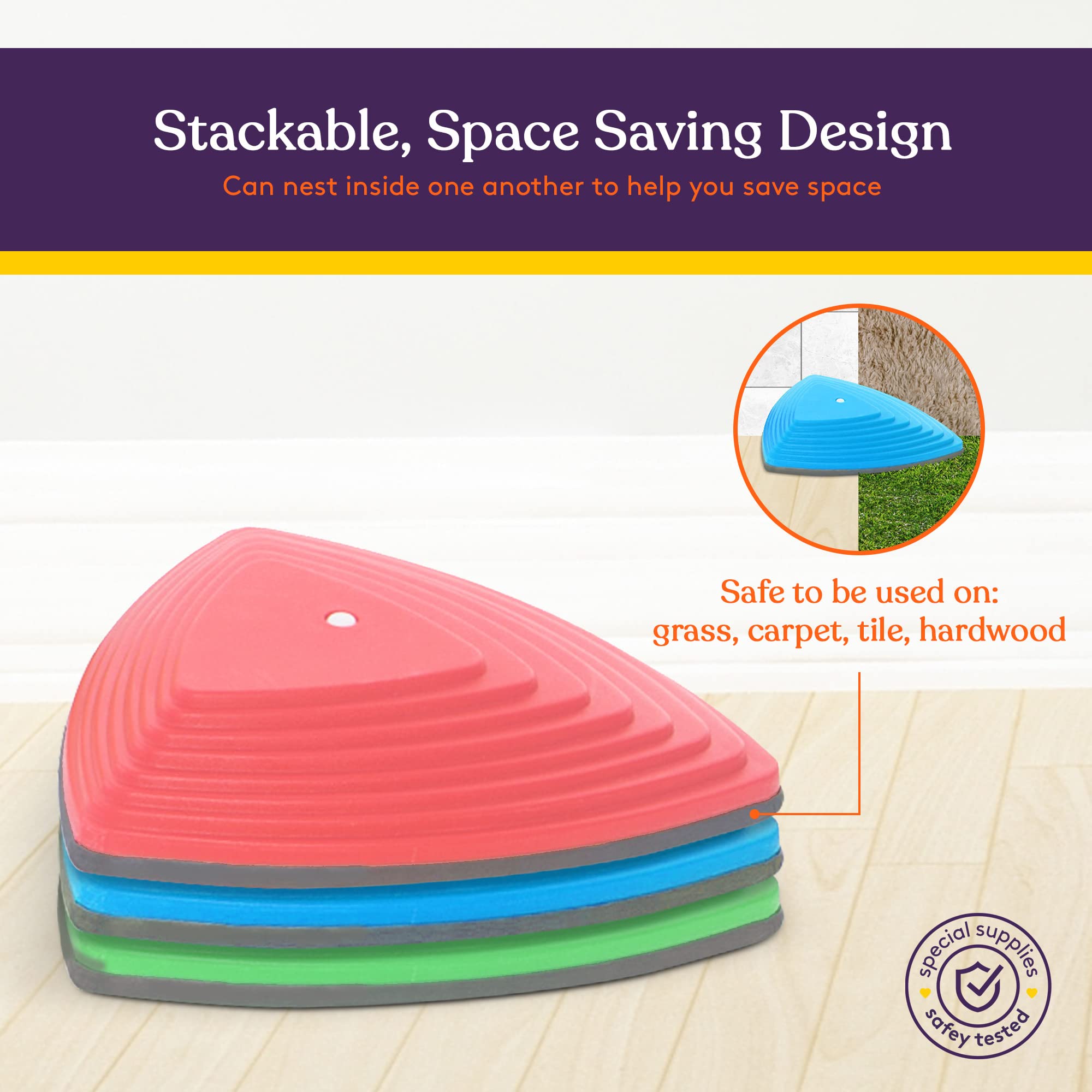 - Indoor and Outdoor Play u2013 Special Supplies balancing blocks are durable enough to be enjoyed almost anywhere! Their rugged nature and full rubber, slip-resistant bottoms make them safe for carpet, tile, and grass.