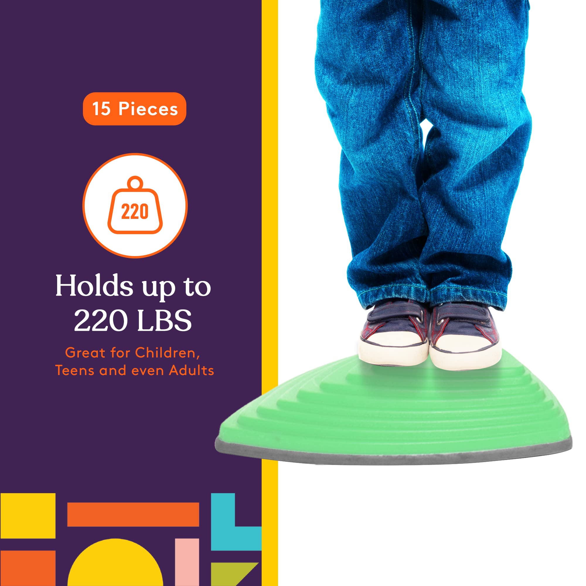 - Kid-Friendly, Kid-Safe Fun u2013 These balancing stones feature a non-slip rubber edge to reduce slipping or accidents. Our durable design can handle as much as 220 lbs. body weight to accommodate children, teens and adults.