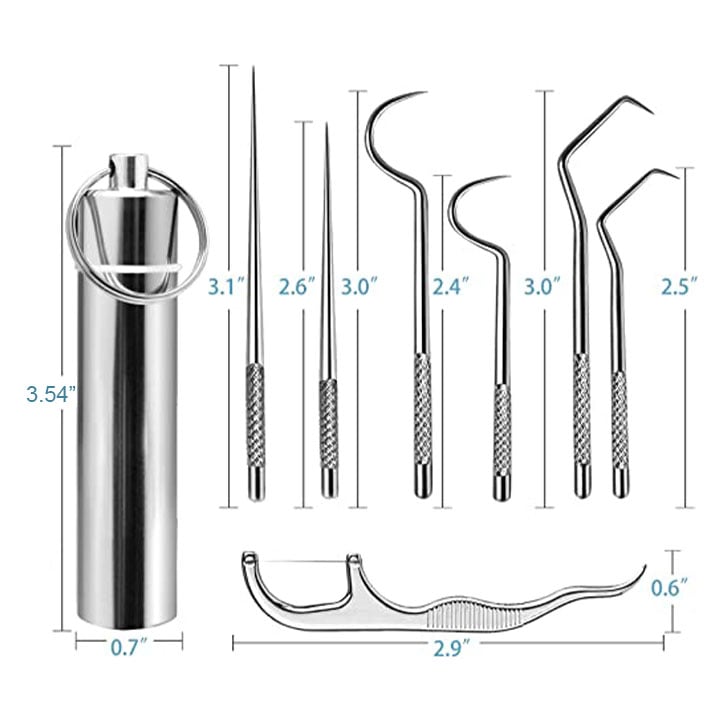 - Portable Stainless Steel Toothpicks Instead of the cheap & weak dental scraping tools. It is made of smooth stainless steel metal with ultimate strength.