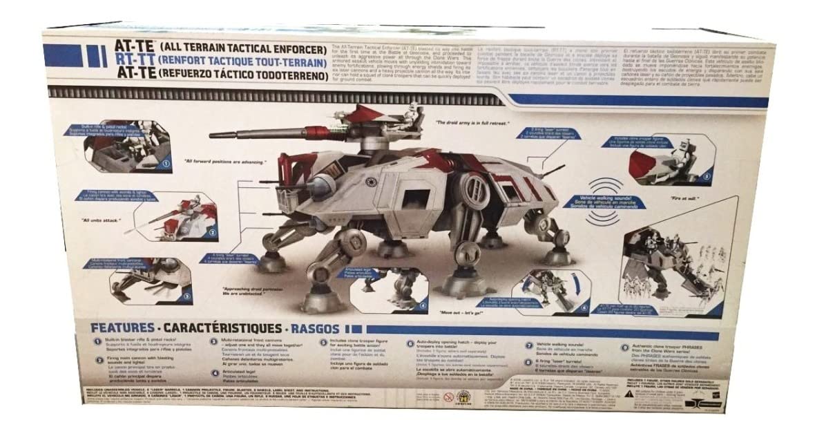 - Includes unassembled vehicle, 6 laser barrels, 1 cannon projectile, clone trooper figure, blaster, 8 wheels, label sheet and instructions