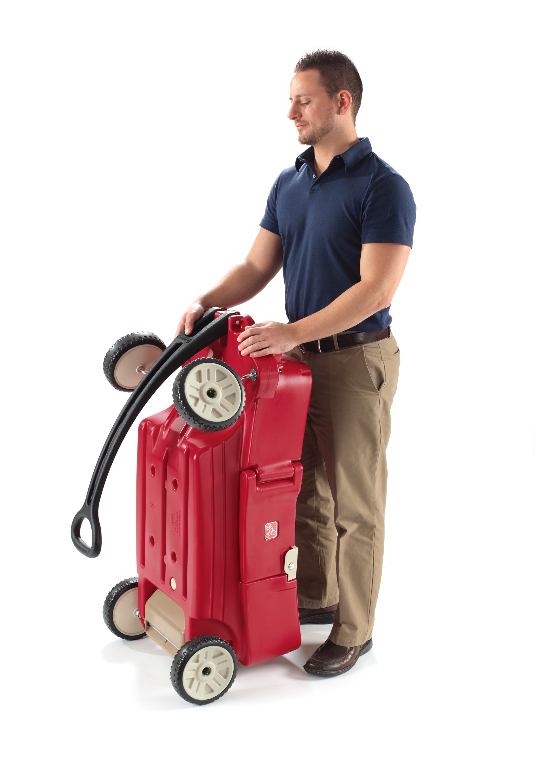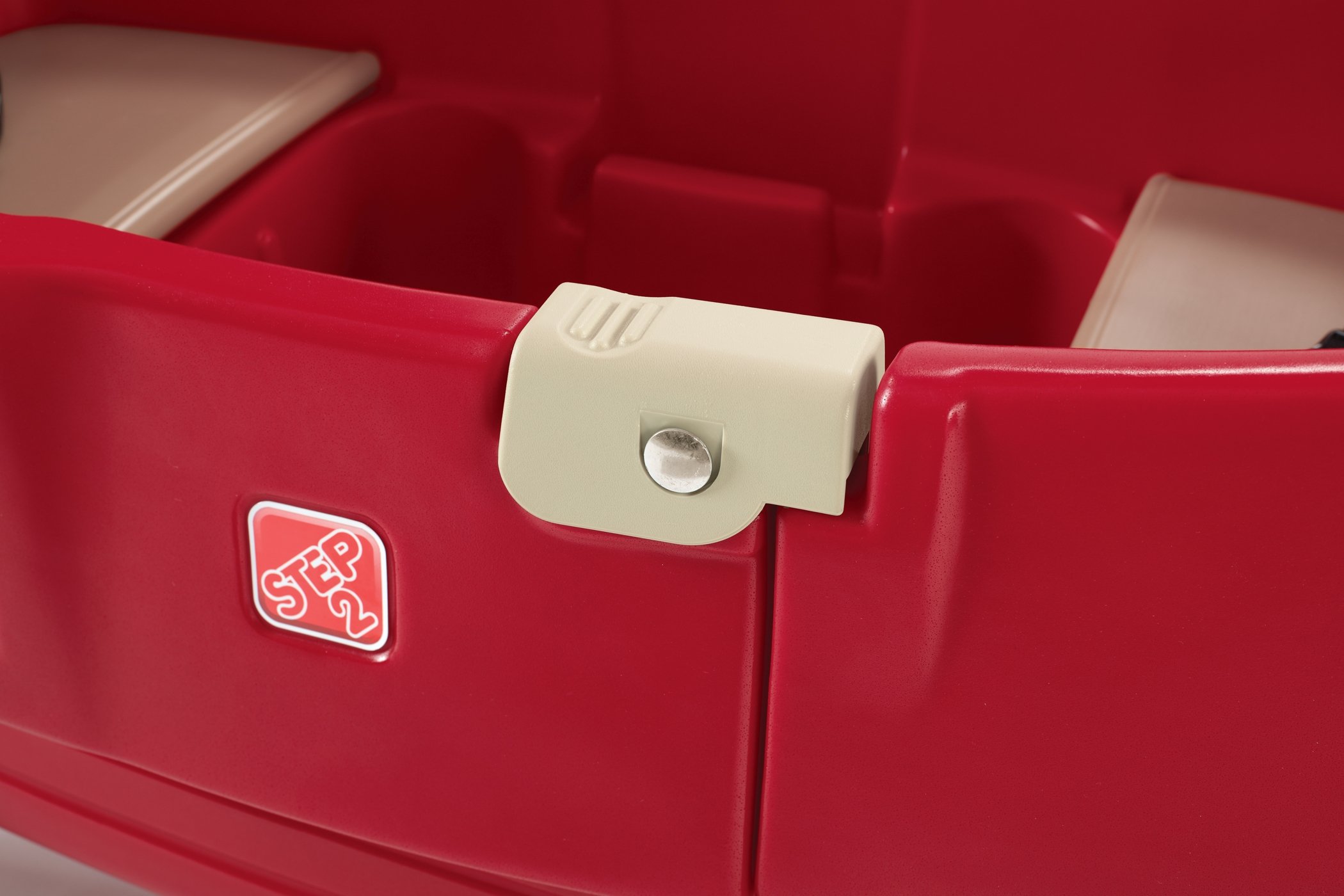 - STROLLER WAGON: Comfort and durability combine in the two-seater Step2 All Around Wagon. Kids will have a comfortable ride in the wagon cart with contoured seats and a deep foot well. Buckle up the two seat belts, latch the door, and get rolling!