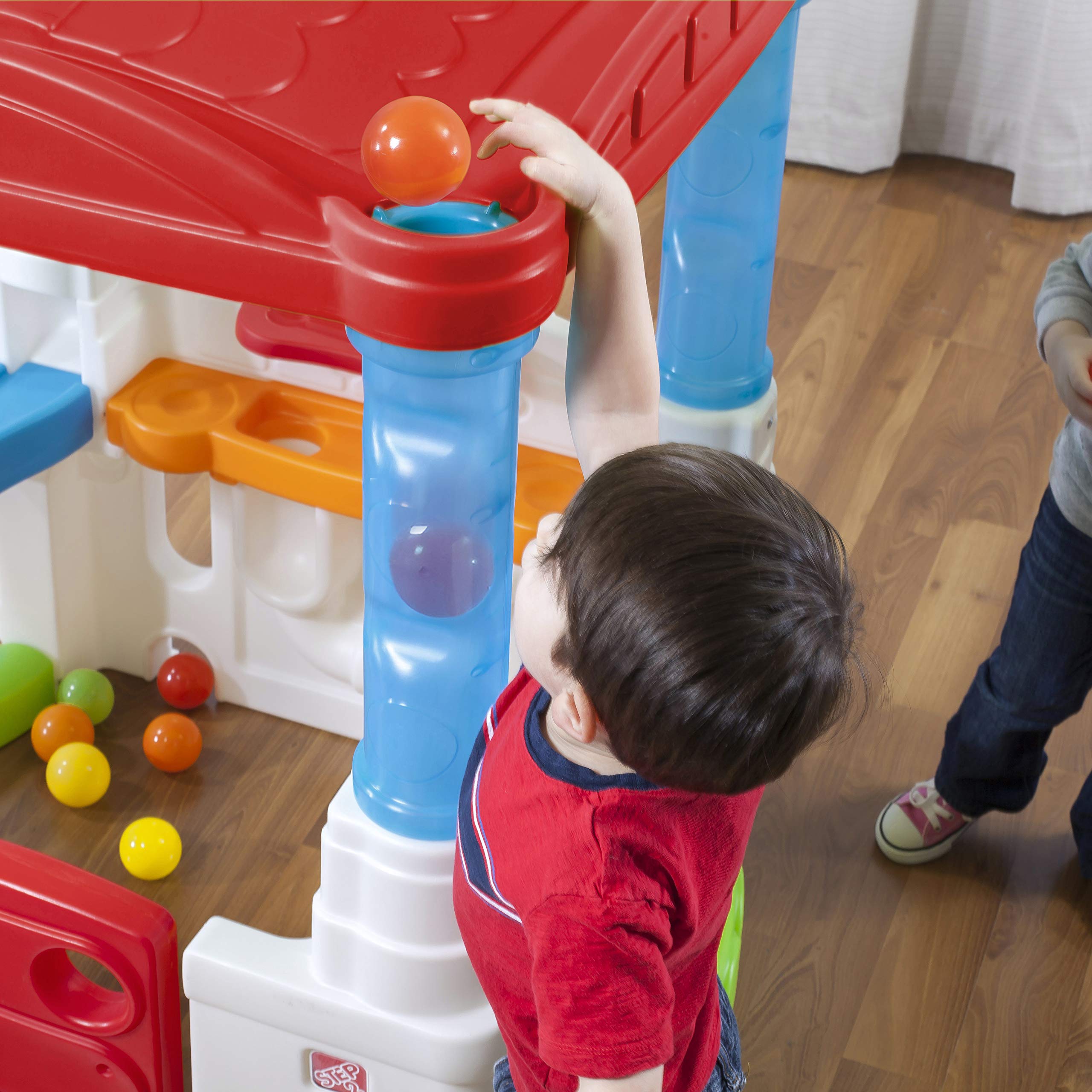 - KIDS PLAYHOUSE: Little ones will have a ball with this fun Step2 Kids Ball Pit Themed Playhouse! So many fun features both inside and out of the ball pit playhouse to discover cause and effect and build motor skills.