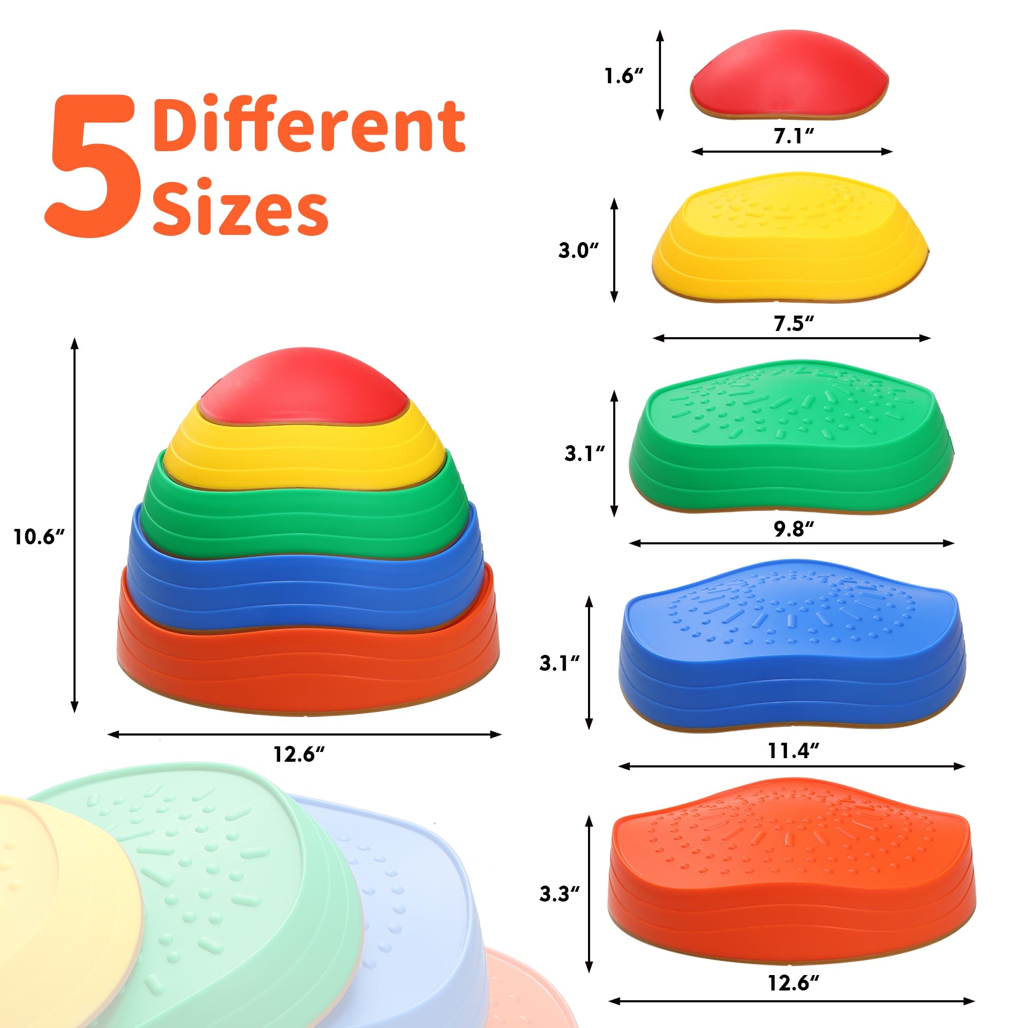 - ud83dudfe1u3010MORE FUN IN HARMONYu3011We always keep children's health in mind. Each balance stepping stone is made of durable polyurethane plastic that is non-toxic, odourless, solid and stackable for easy storage.