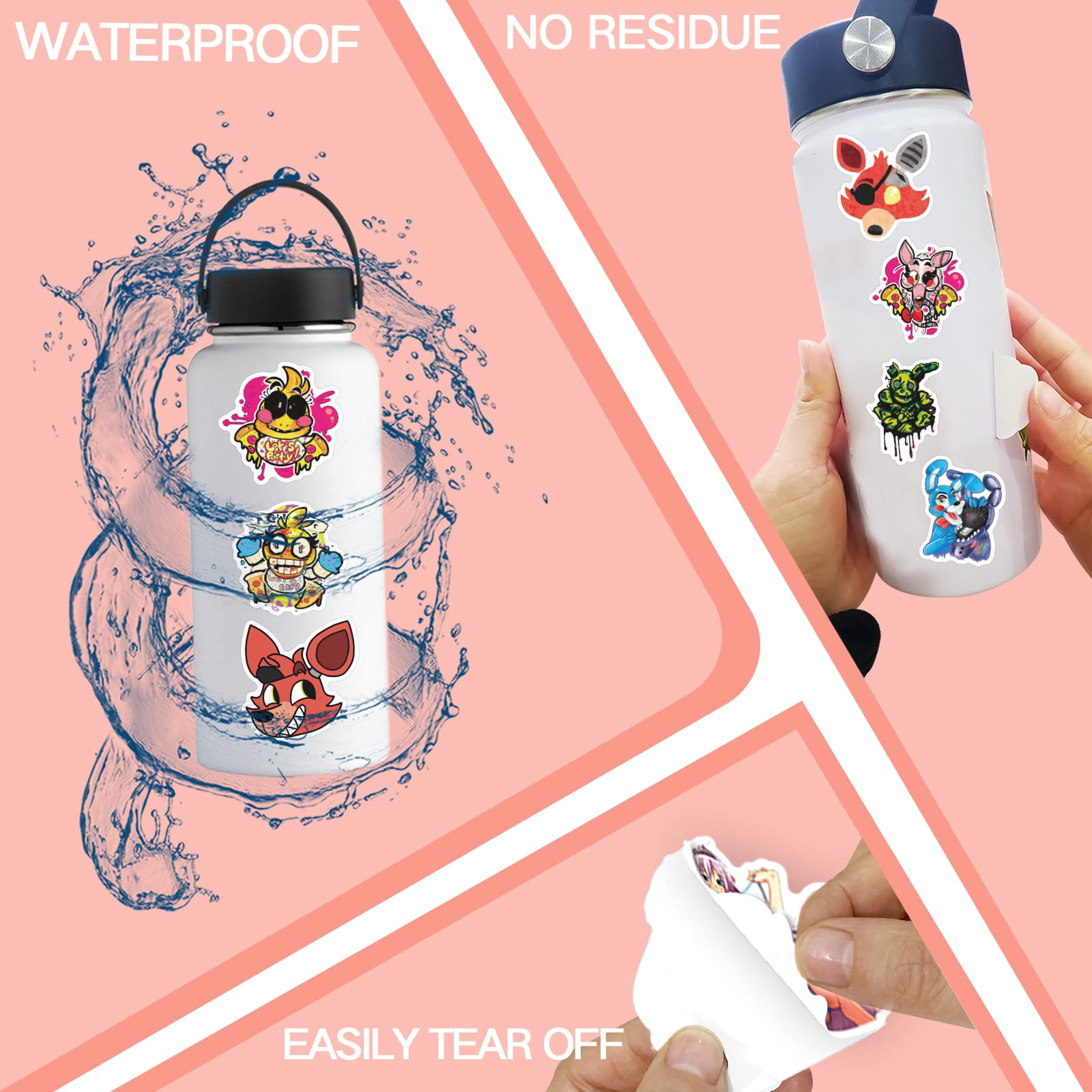 - ud83cudf81High quality sticker: The sticker is made of waterproof PVC material which are sun protection and waterproof.About 2-3.6 inches 100 pieces of Fnaf Stickers Gifts No duplicates.