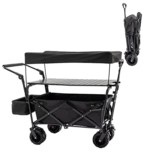 - WAGON WITH CANOPY FOR KIDS: Our WANAN new wagon stroller with aluminum table plate and canopy design.Each seat provides a double buckle safety belt, the child sits more safely.Fully meet your travel requirements, it can be turned into a simple dining table and a carport can be built. Get the most out of your outdoor fun!