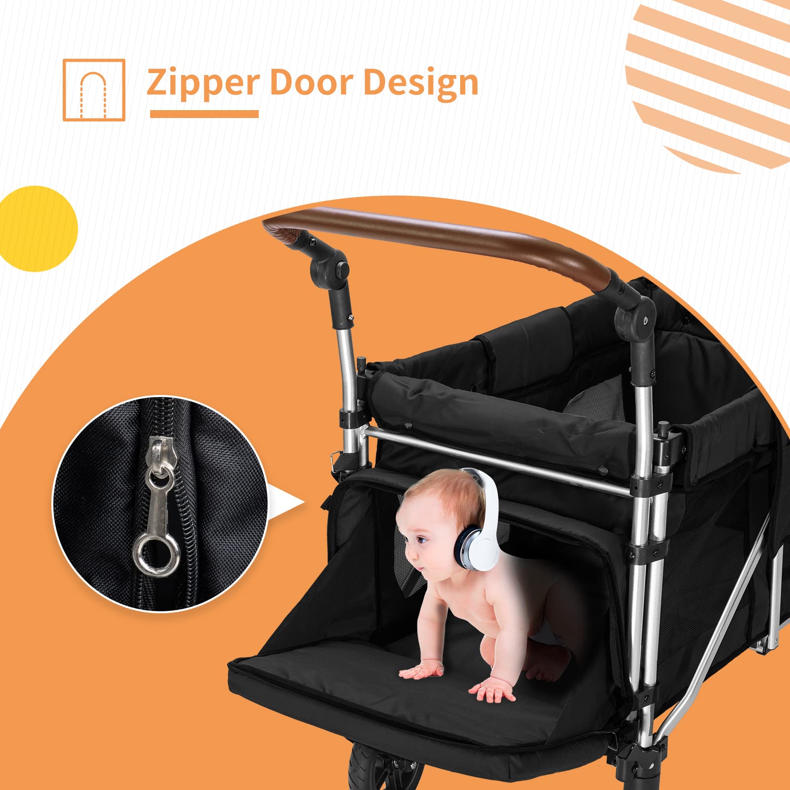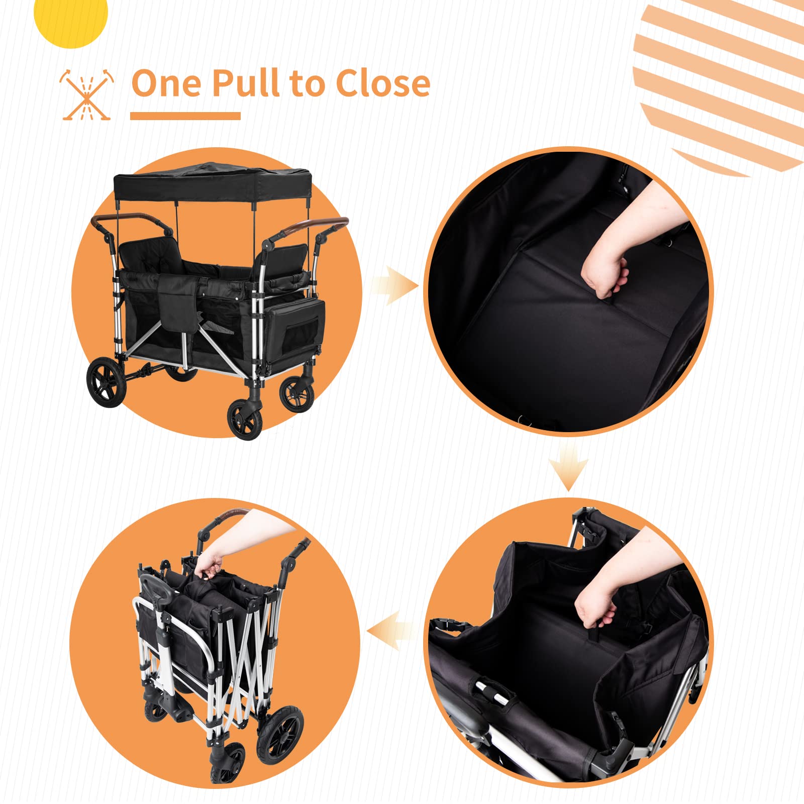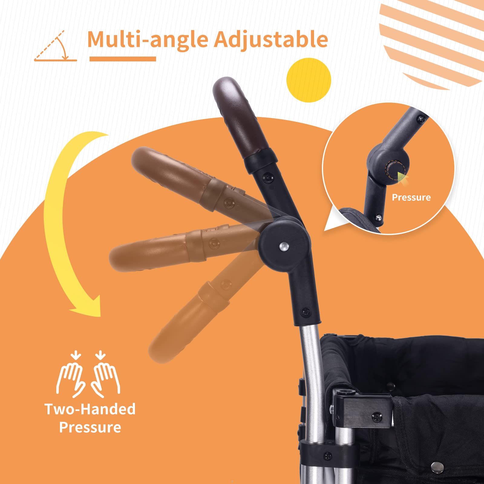 - u3010Adjustable Double Push Baru3011 This wagons for kids takes 10 sections of adjustable double push bar design, a variety of angles to suit different heights of parental height, pushing and pulling the stroller more easily and conveniently.