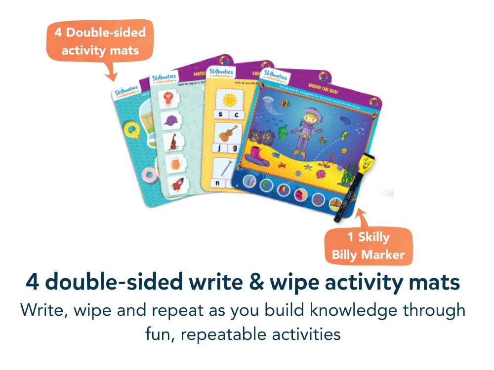 - INCLUDES - Be Curious Learning Kit contains Guess in 10 Junior Animal Kingdom, Clever Cubes, Turn & Learn Letters and Phonics, 4 double-sided Write & Wipe Activity Mats, a Storybook and Parent Guide.