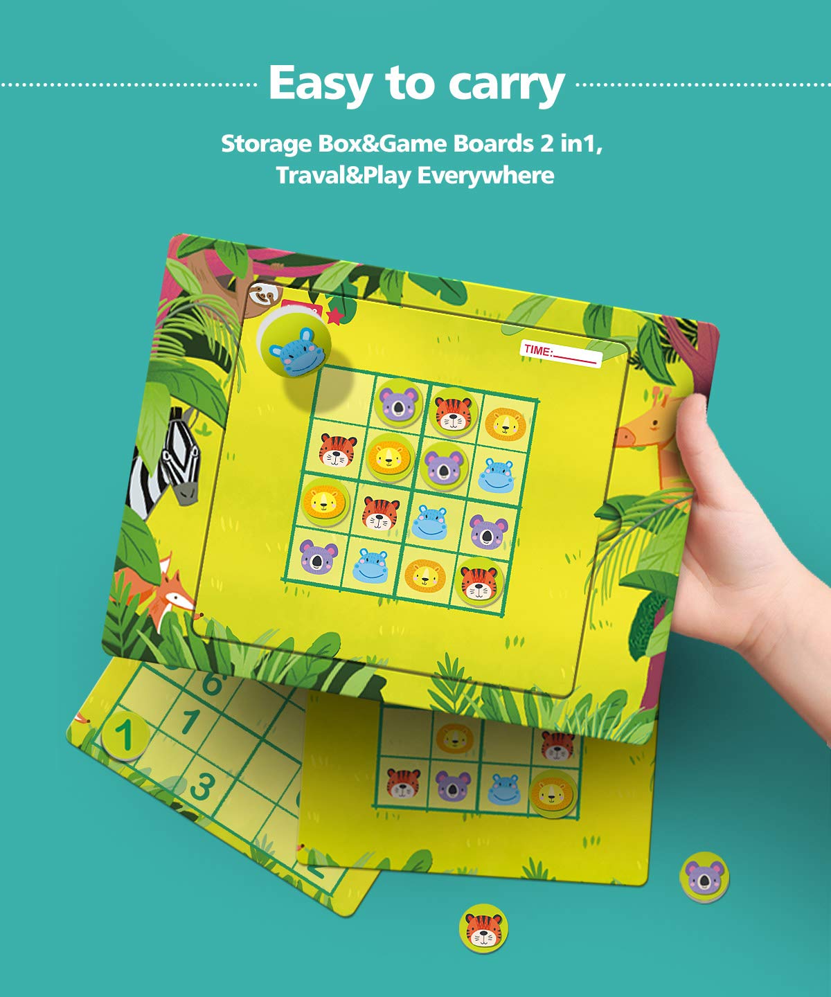 - u3010Storgae Box & Game Board 2 in 1u3011:Unique 2 in 1 box design, bring more convenient for playing or storage, it is travel board games for kids, easy to carry