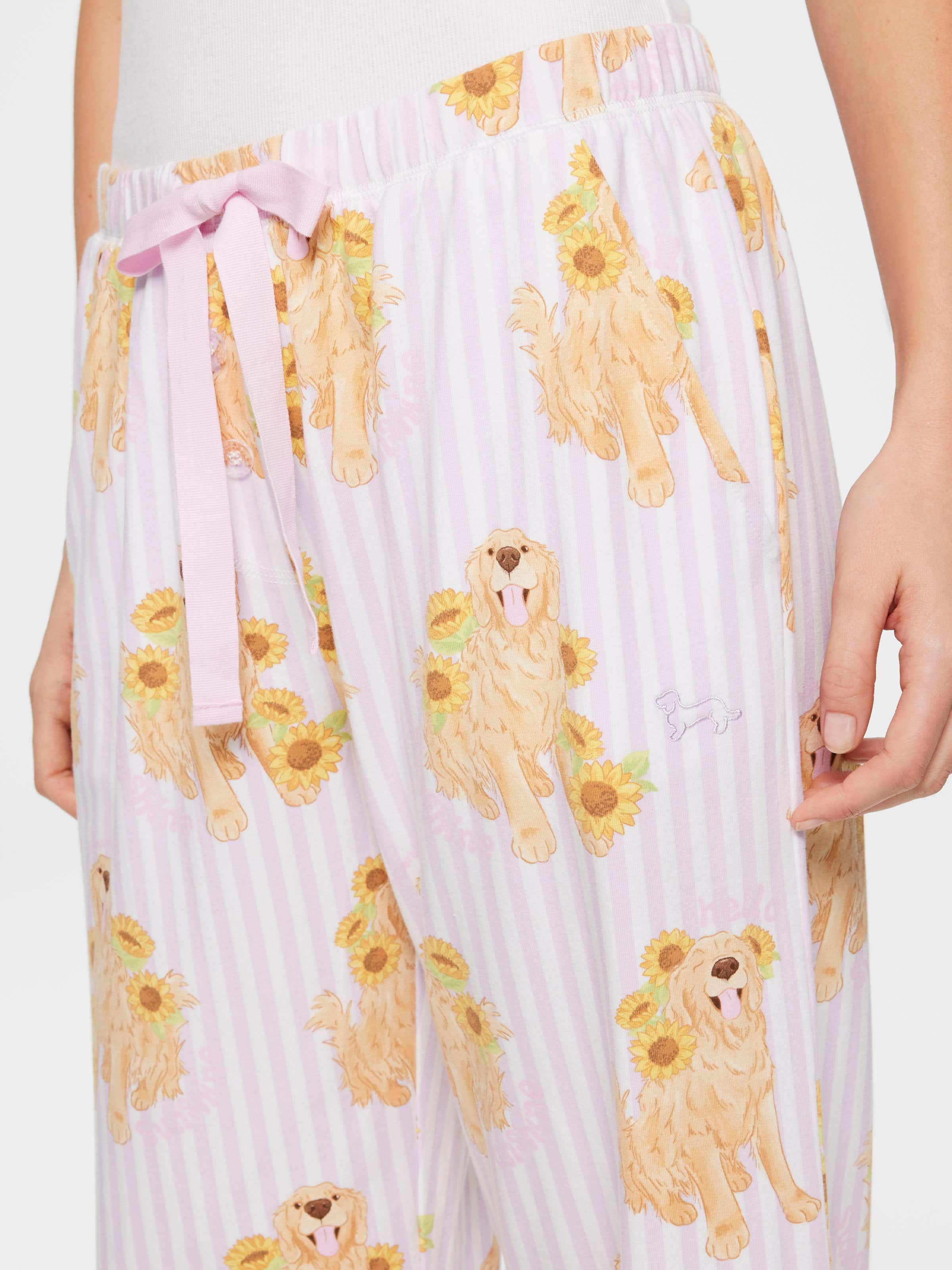 Sunshine, belly rubs and rainbows... isn't that how the song goes? These adorable women's pants feature an all-over striped golden retriever print, and pair best with the matching tee - a perfect gift for any goldie lover.